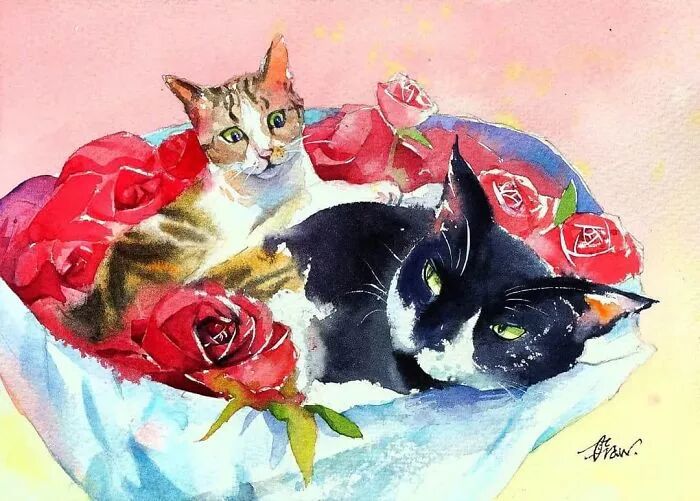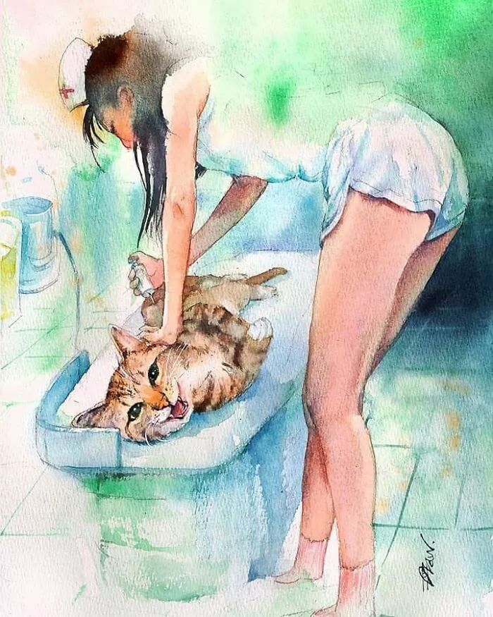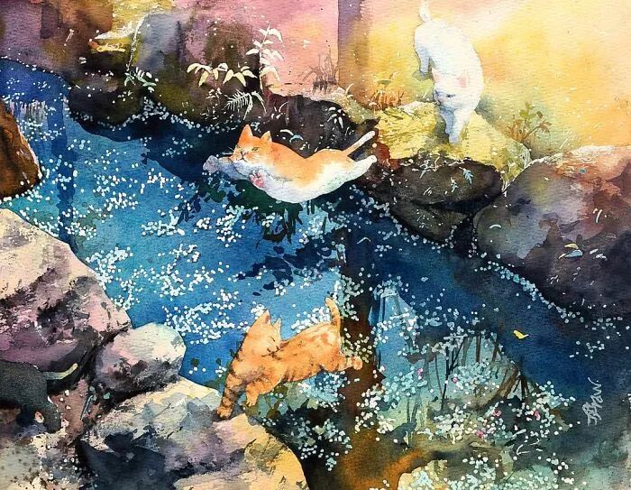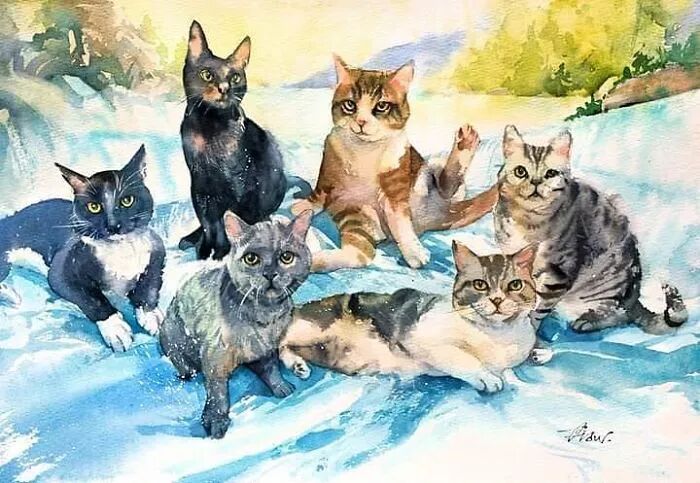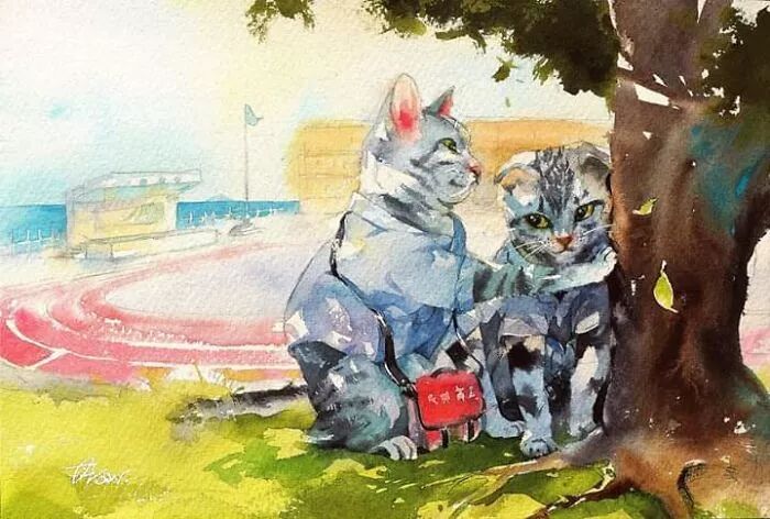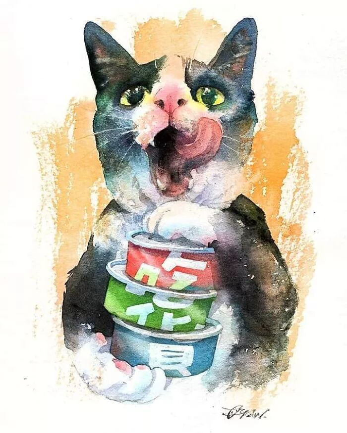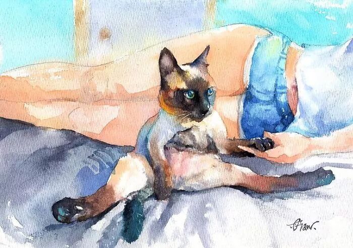我是一只水彩猫,我的主人是一个台湾插画师,她不仅人美还非常努力,除了吃饭睡觉工作之外,她最喜欢的,就是和我待在一起了。