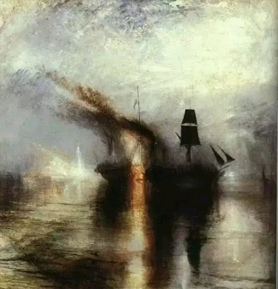 英国浪漫主义水彩大师JMW·透纳创作的抽象风景画,激烈、狂暴、速度,充满强烈的情感表达。