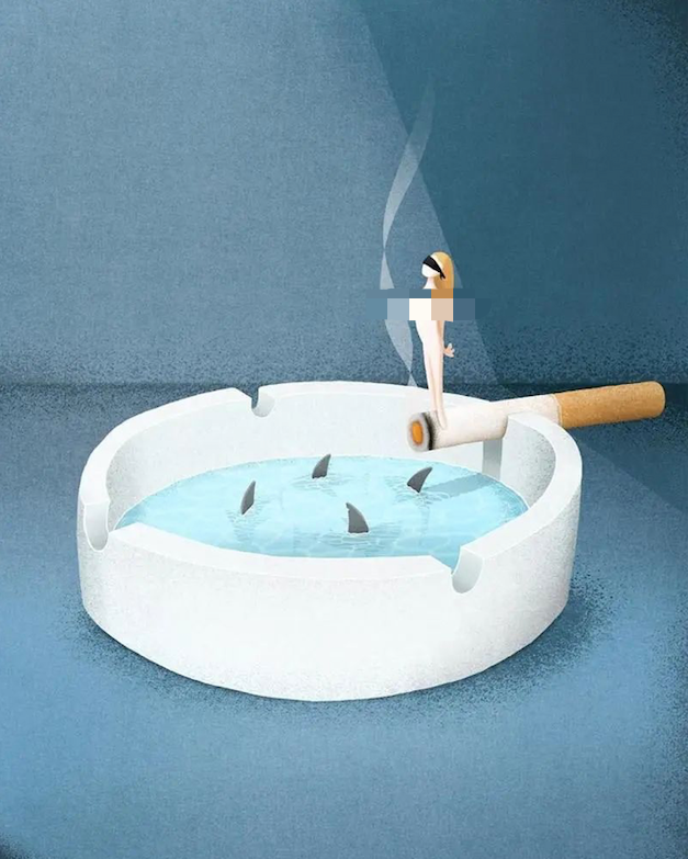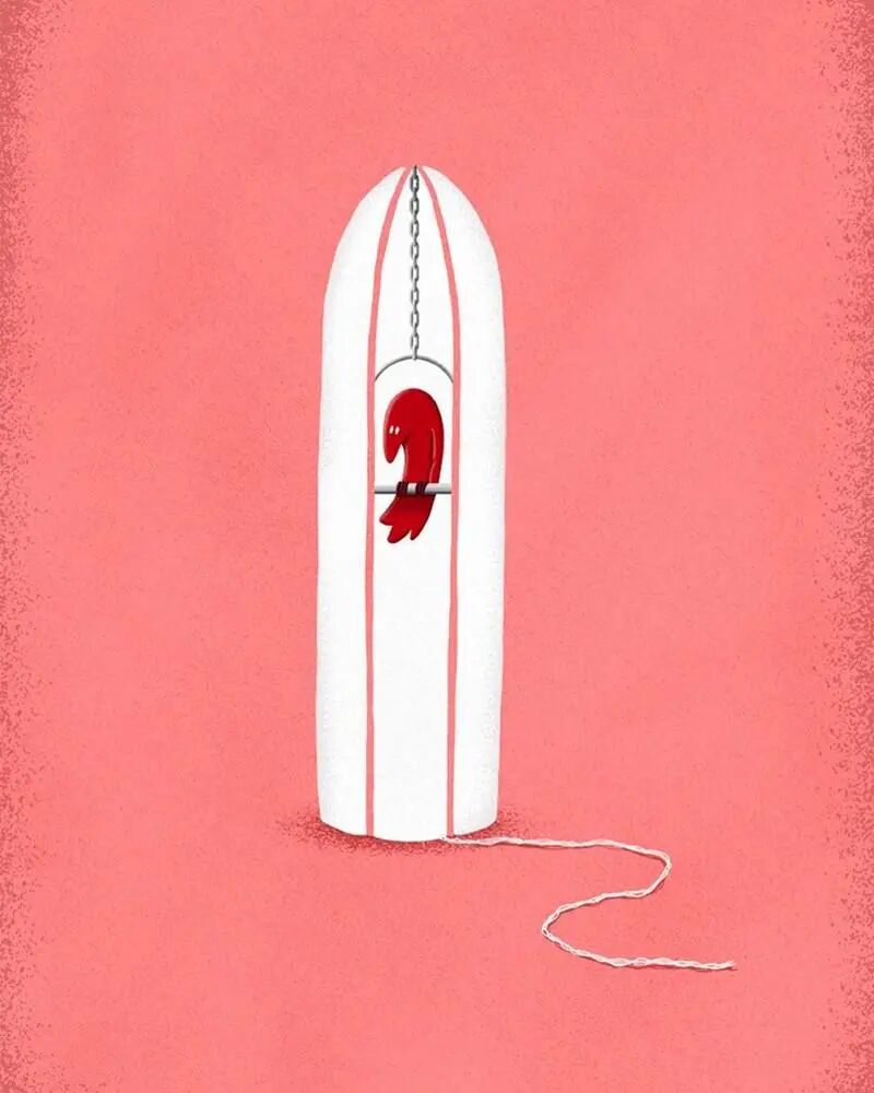 因此,选择以讽刺插画作为创作题材的艺术家,一般都不会非常年轻,试想一下,十几、二十岁的“小屁孩儿”根本没有足够的阅历和沉淀,即便是让他画,也很难画出深度。其实,之前小绛已经跟大家介绍过太多优秀的讽刺性插画家了,不知道大家有没有发现,创作这类题材的大多是男性艺术家,以女性视角来剖析对这个世界的看法的,真的非常少见。