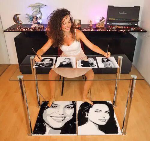 可以分心两用的人并不在少数,但是可以运用得好的,却并不多见。在荷兰有一位名叫拉贾塞纳·凡·达姆的女画家,她不仅可以同时使用双手绘制不同的画作,甚至,还可以同时用上双脚去绘画。