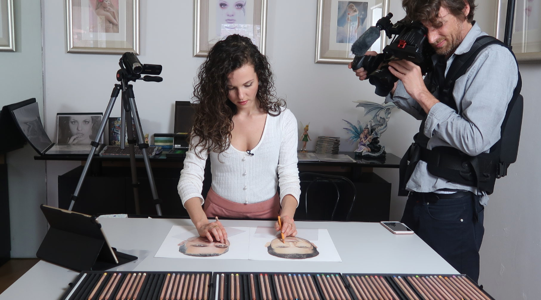 事实上,这并不是拉贾塞纳·凡·达姆第一次分心绘画,在2019年和2021年的时候,她都进行过双手绘画挑战,使用双手去完成的作品,写实程度非常高,如果不仔细看,都会让人误以为是一张照片。