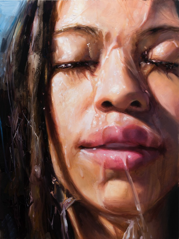 另外,这位艺术家对于颜料的稀薄浓稠也把握得恰到好处,她在黏稠与稀薄、流畅中取得了很好的平衡,操控颜料就像操控流水一样。总之,这位艺术家画出了水的柔和女性的美,二者结合在一起,“杀伤力”更强了,接下来,我们就一起欣赏这位才华横溢的超写实画家,创作的精彩画作吧。