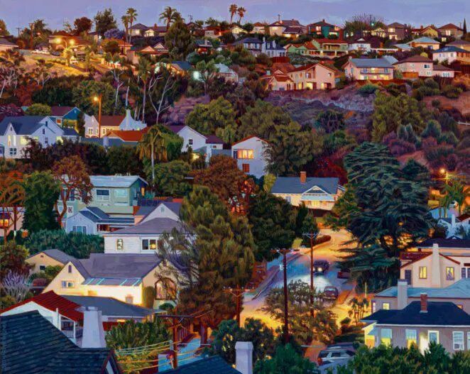 塞思·阿姆斯特朗的超写实画作,带给人的不仅是真实感,还有直达内心深处的归属感,我们生活在城市中,城市里的一砖一瓦、一花一草都是我们最熟悉,也是倍感亲切的事物。可能一间房子是我们的小家,那么,一座城便是一个大号的家。这位艺术家画出了城市烟花气息,画出了人们生活的气息,同时,还画出了梦幻和诗意,让人感觉舒服极了。