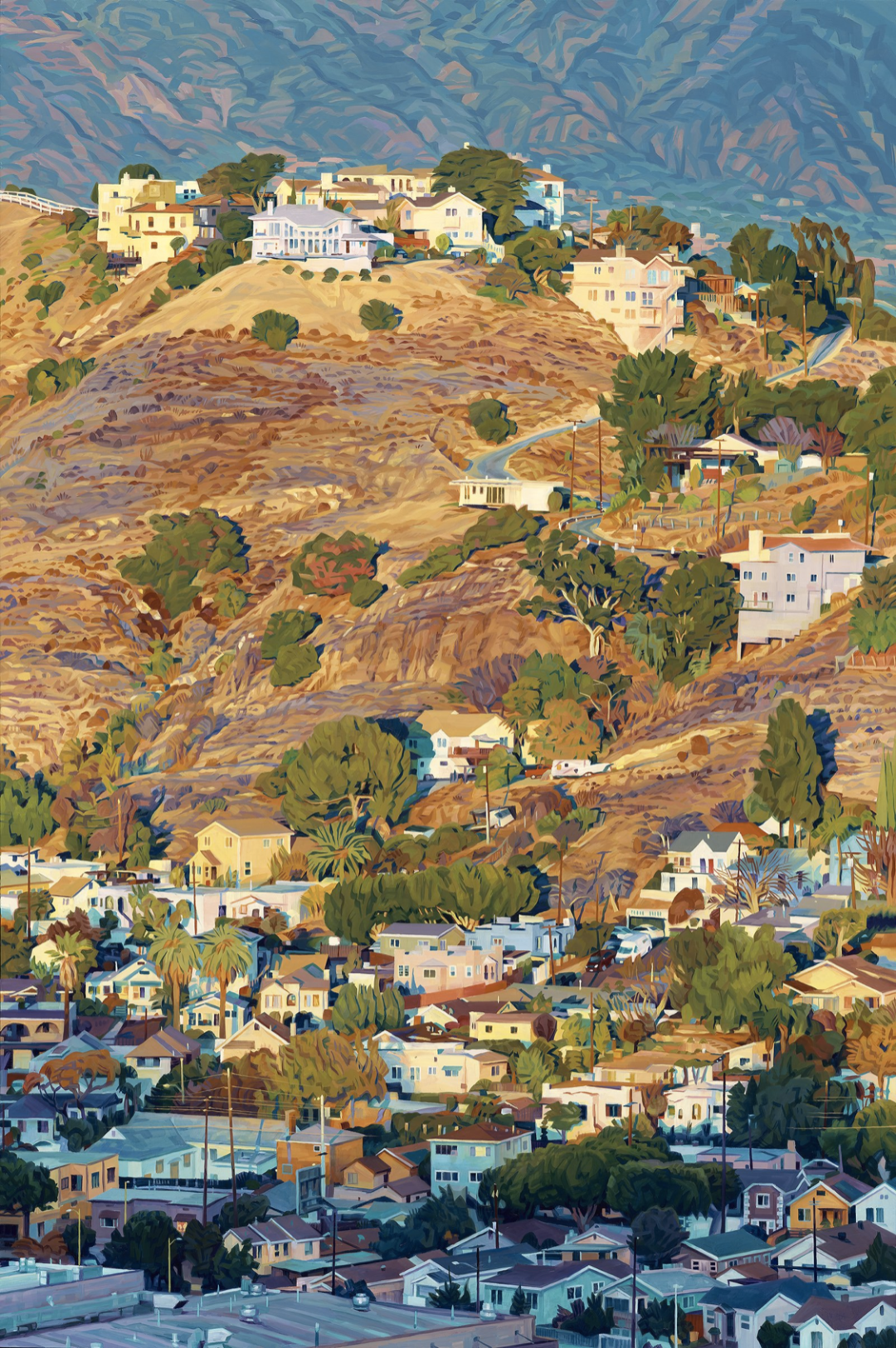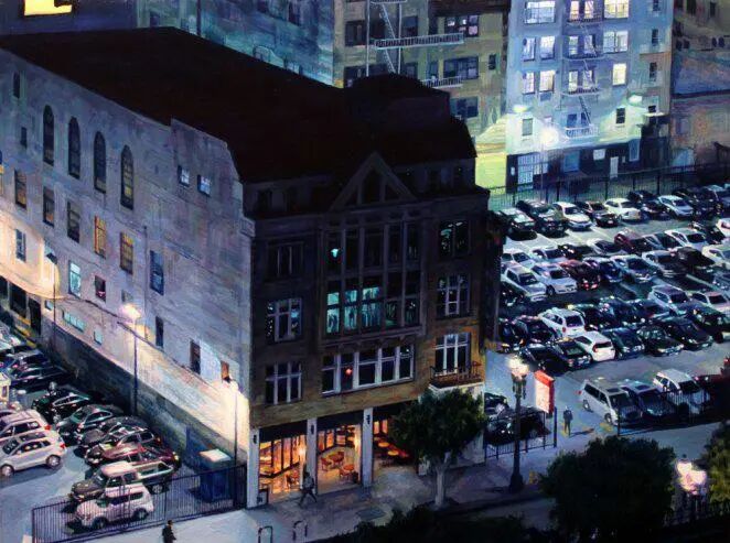 虽然难,但还是有人迎难而上,来自美国洛杉矶的80后油画家塞思·阿姆斯特朗,就是一位擅长表现城市风景画的艺术家,不论是绘制城市风景,还是叙事性的人物肖像,或者是将二者结合起来,这位艺术家都可以完成得非常好。