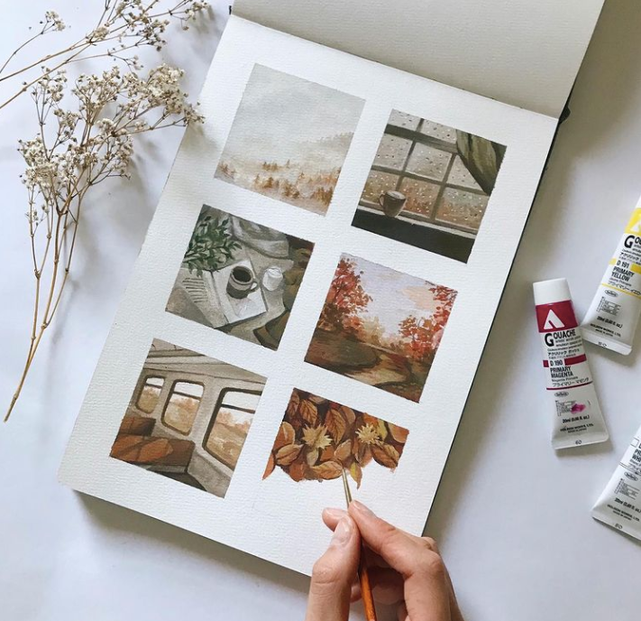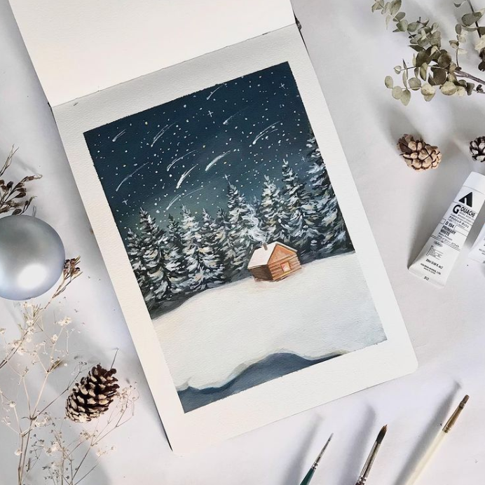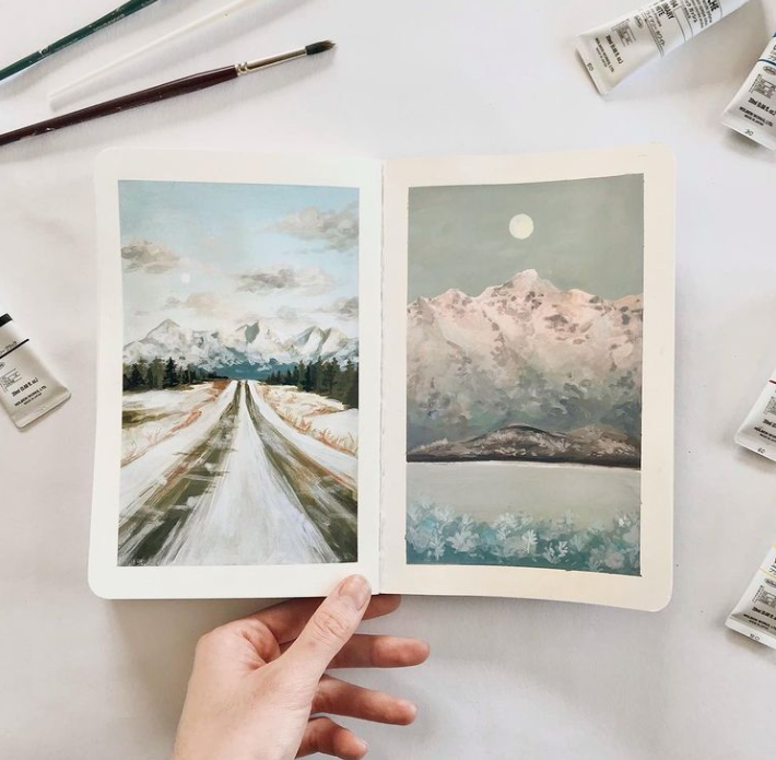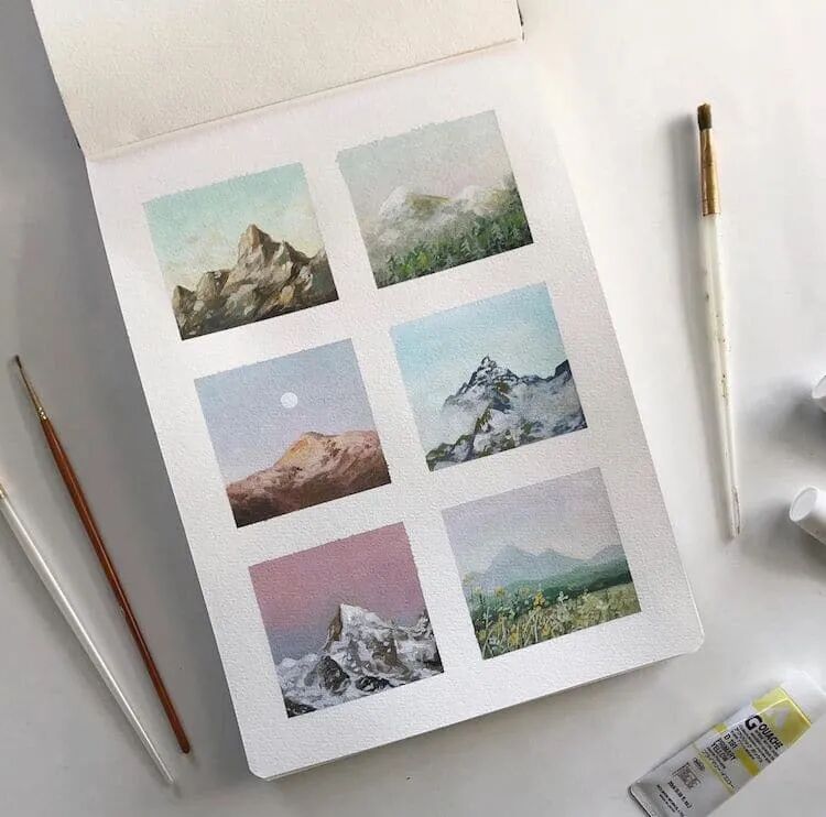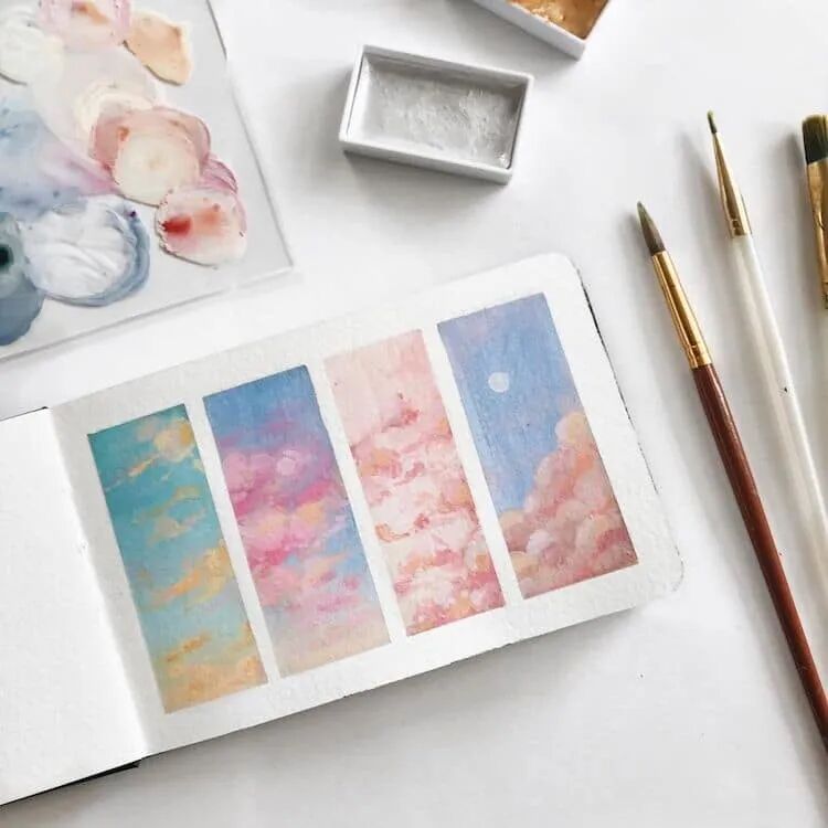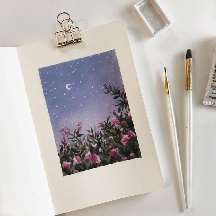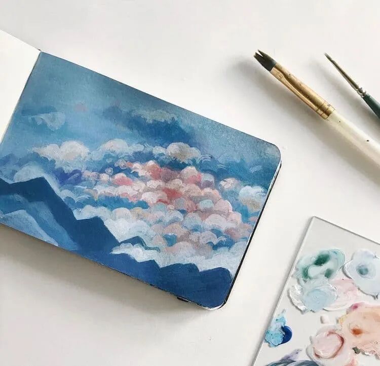就像是我们在这位水粉画家作品上看到的色彩,有紫色的落日、蓝色的山峰和粉色的天空,每一种色彩都表现力极强,虽然,这位水彩画家的绘画功底还稍显稚嫩,但是,她的糖果风绘画作品受到众多人的喜爱。