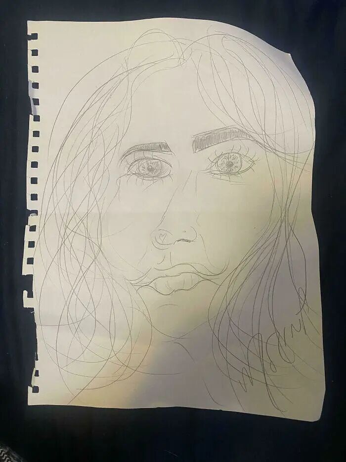 1、酒吧里的一位艺术家,为网友画的自画像。