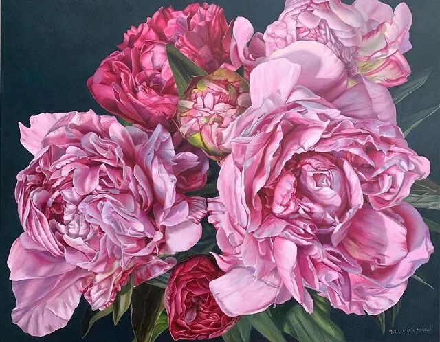 接下来要为大家介绍的就是一位花卉画家,她的名字叫做玛尔塔·莫雷利,来自阿根廷的首都布宜诺斯艾利斯,这位女画家拥有非常丰厚的绘画经验,在她的花卉作品里,每一个花朵都非常写实,但是,它也具有象征意义。
