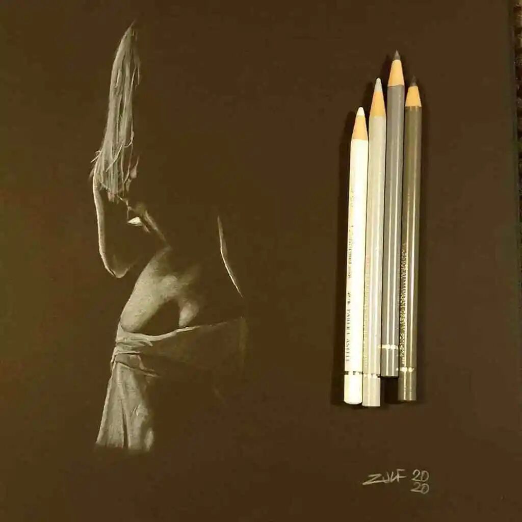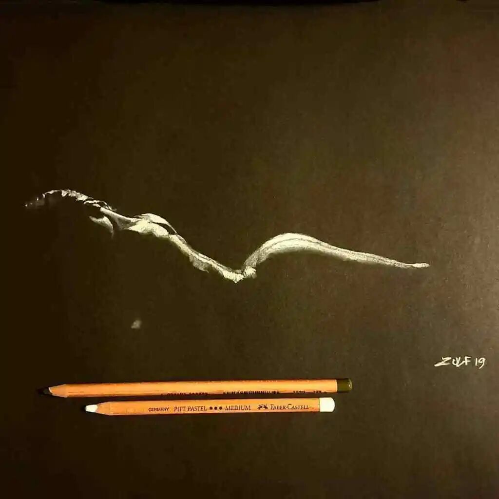 正常来说,绘制素描画作都是一张白色的素描纸和几只黑色的铅笔,偏偏就有一些另类的画家,非要和别人反着来,别人都是用黑笔白纸来画画,那好,他就要用白笔黑纸来画画。