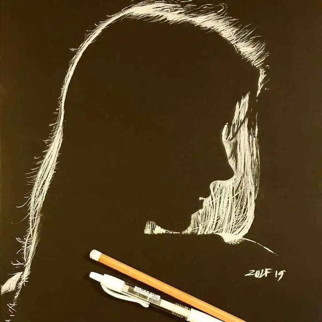 接下来,就跟小绛一起欣赏这位艺术家用白笔黑纸创作而成的素描肖像画吧,相信你看完也一定会对他的创意表示认可和称赞。
