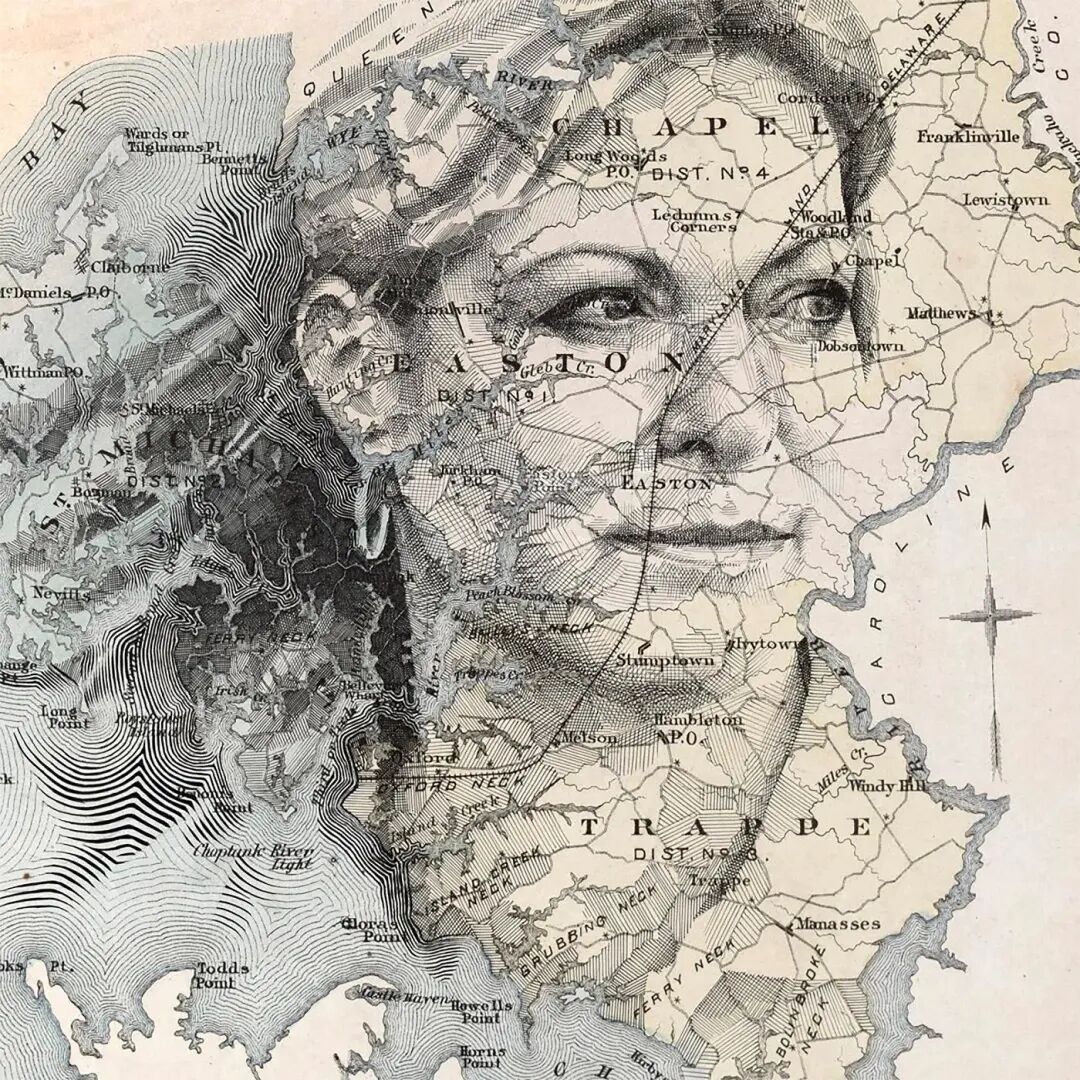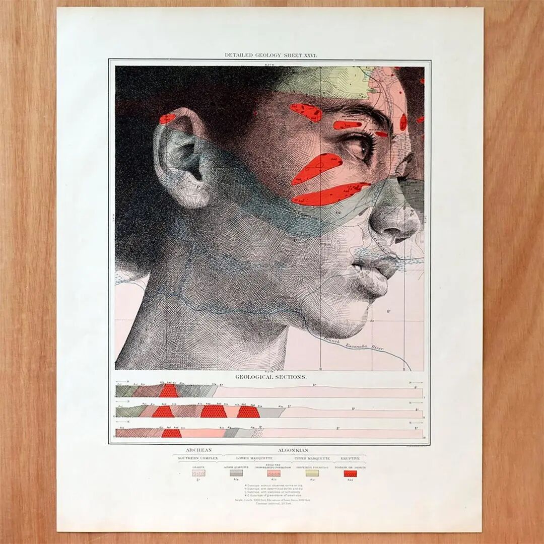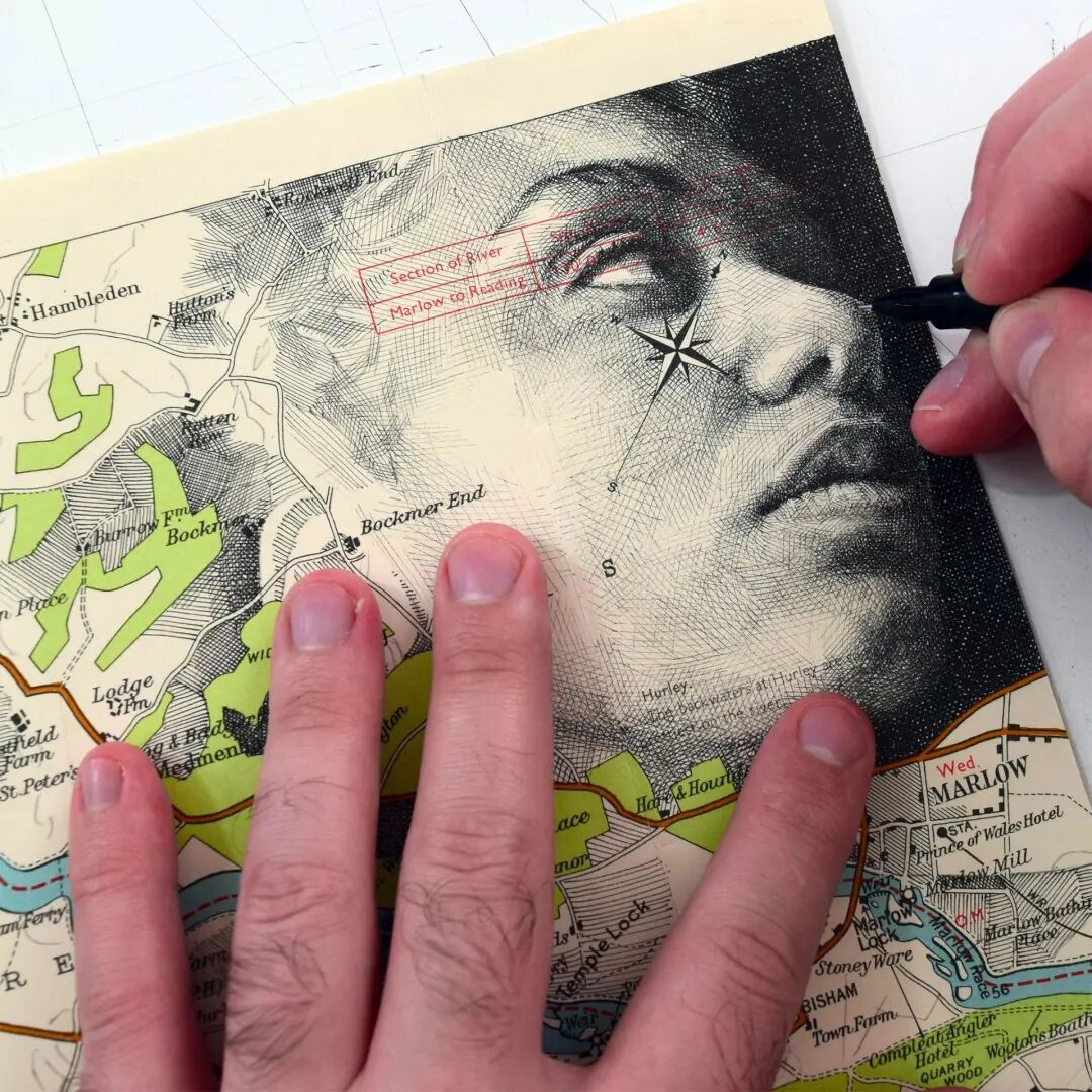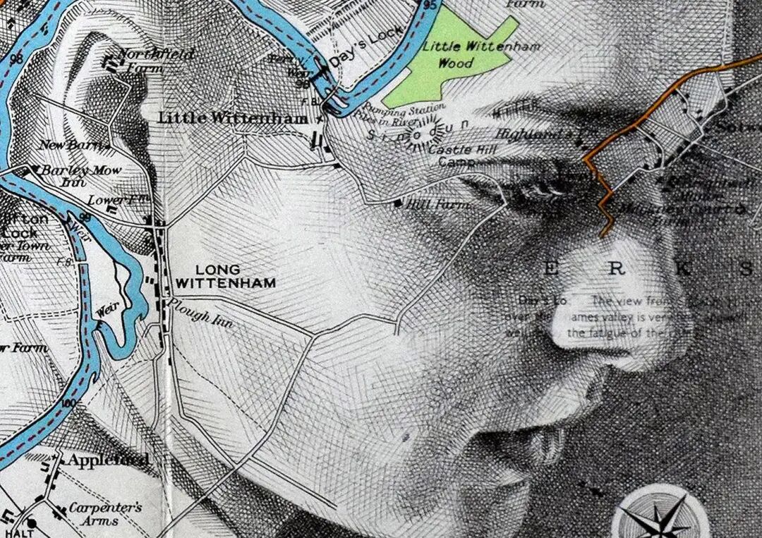 在地图上绘制,是埃德·费尔伯恩乐此不疲的事,在绘画开始之前,他会花上几个小时的时间去研究这幅地图,并设想自己的绘画作品,在这张地图上呈现的效果如何,长时间的准备工作,让这位画家的作品与地图原本图形结合得十分完美,乍一看,都会让人误以为,这些地图痕迹也是艺术家后期绘制上的背景。