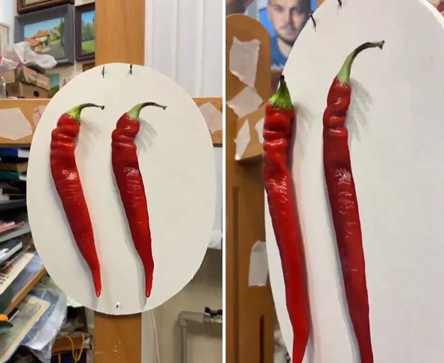 乍一看谢尔盖·阿尔特米耶夫的画作,会让人感觉没有什么意思,在一张照片上,出现两个同样的事物,就像是一张普通的照片,可是,当镜头从侧面拍过去,就出现了堪比魔术表演的场景,画作和实物瞬间区别开来,经过对比后让人咋舌。