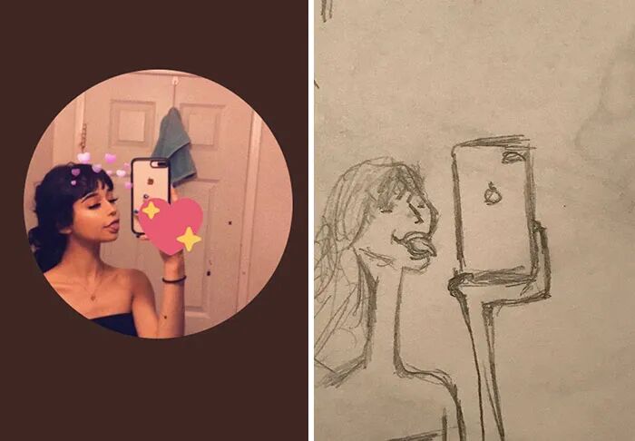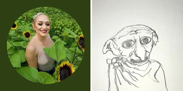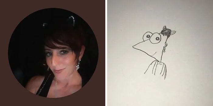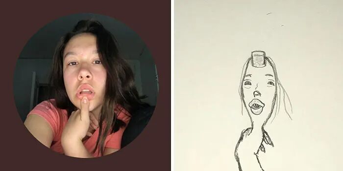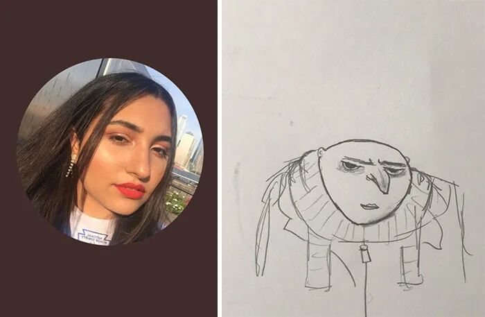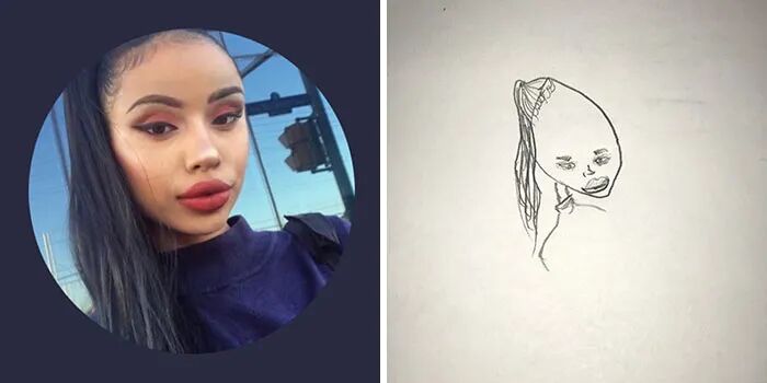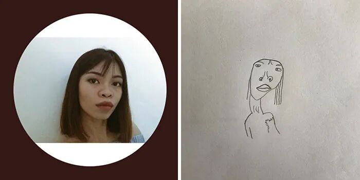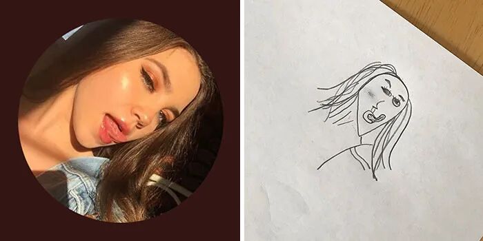 接下来,就让我们一起来欣赏一下这位“灵魂画手”的肖像作品吧,在图像的左边是人物照片,图像的右边则是安生的画作,相信,在看完这些画作后,一定会让你哈哈大笑起来。