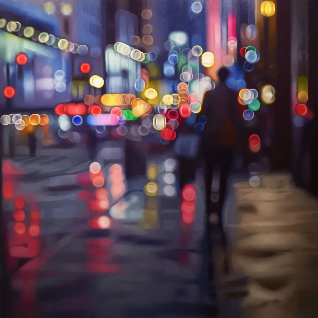 用菲利普·巴洛的话说,这些画作可以让我们看到光线和彩色在复杂的环境中融合到一起的瞬间。正是这种短暂的瞬间,让汽车的灯光、商场的招牌都变成画作中闪光的装饰品,给观看者带来熟悉却又神秘的视觉体验。