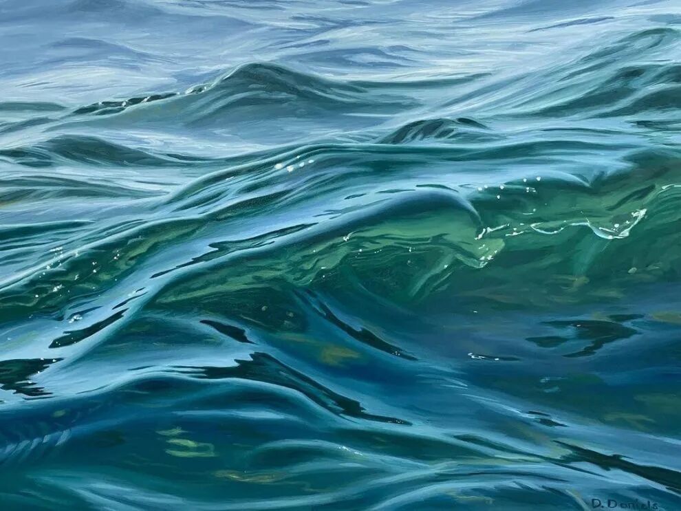 来自美国的艺术家黛比·丹尼尔斯,就是一位以绘制水闻名的写实主义画家,这位画家的作品,主要描绘的景象是圣胡安群岛及其周围海滨风光,在她看来,这些风景变化无穷,每一处都值得描绘,在美景的景色中,她还是最偏爱海水,对于她来说,海水是永恒的主题,永远不会让人感觉到厌倦。