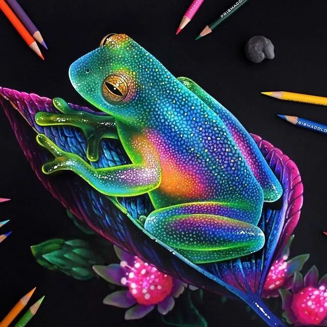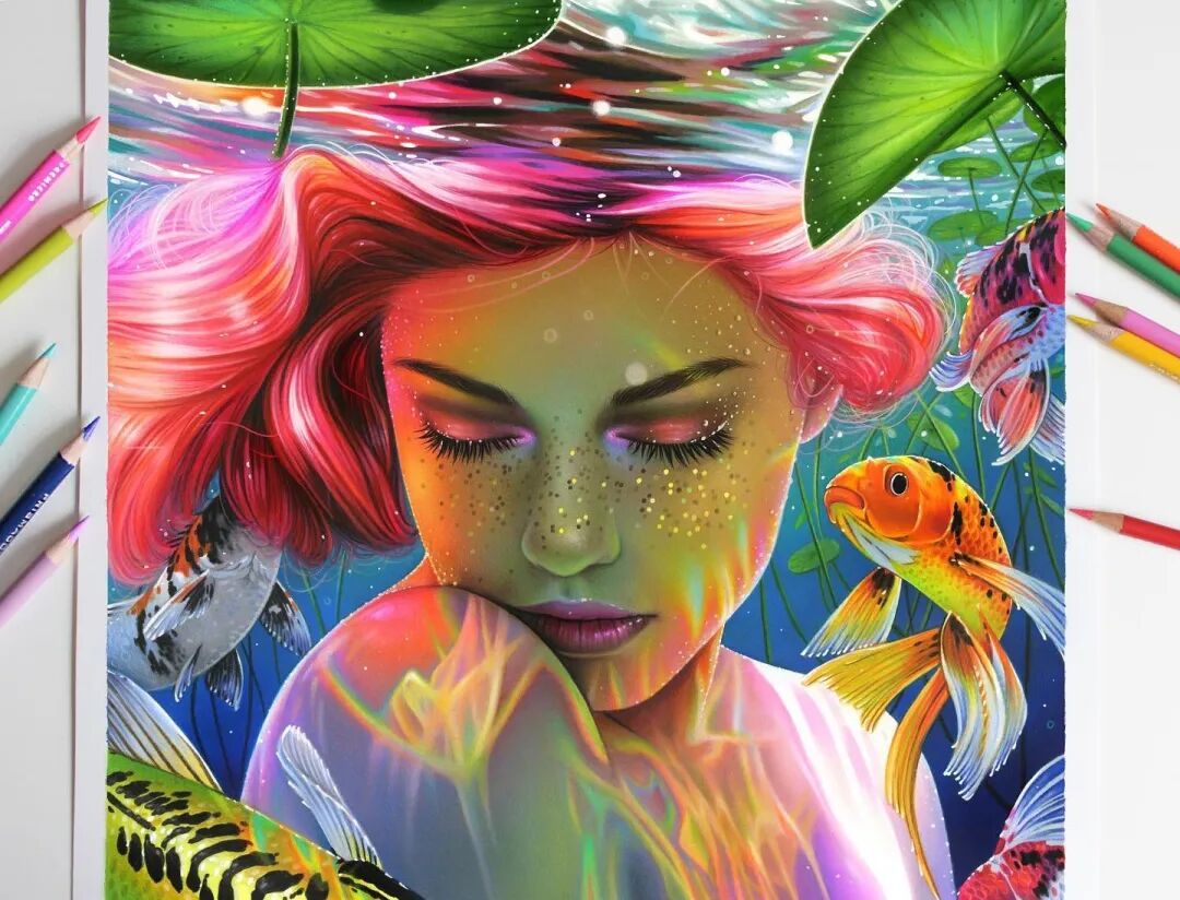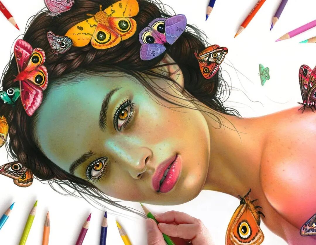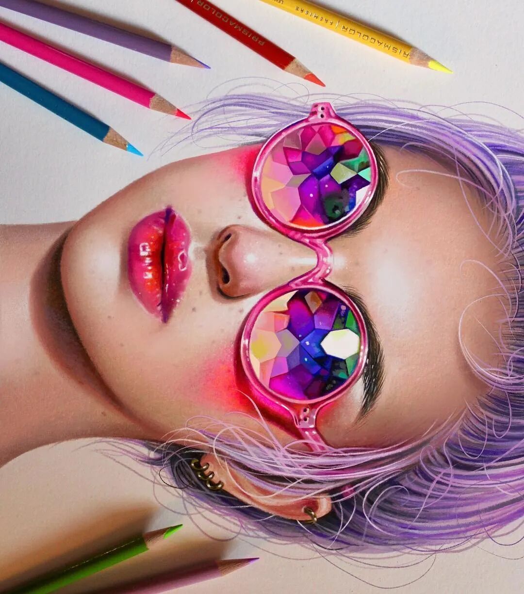 摩根·戴维森擅长使用彩色铅笔来进行创作,除了色彩浓烈之外,她的作品还非常关注细节,主要体现在对身体部位的详细研究,例如眼睛、嘴巴和心脏等等。从她的画作中,我们可以看到她惊人的绘画技巧,画作中的每一个人物、元素,都逼真而完美,给人留下非常深刻的印象。