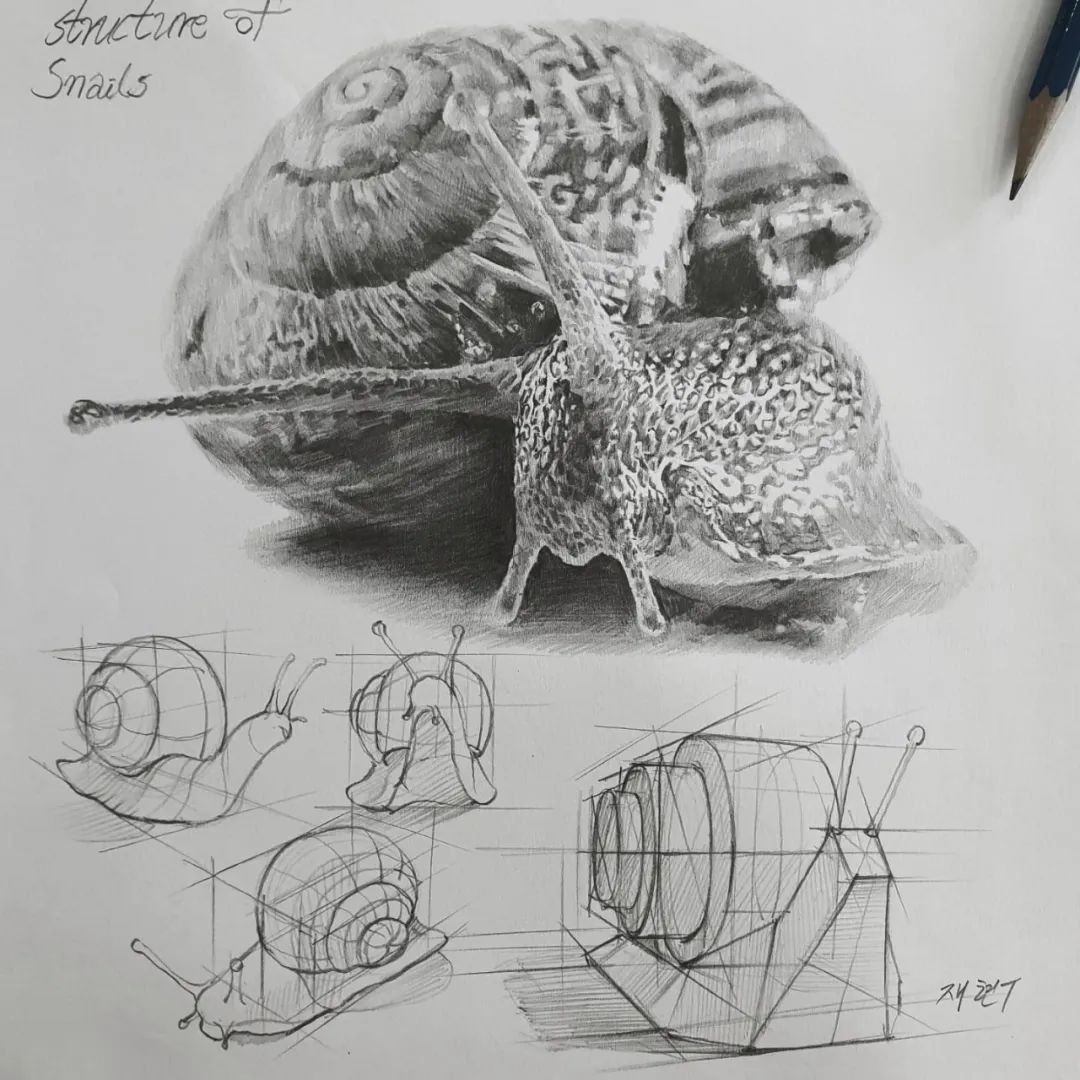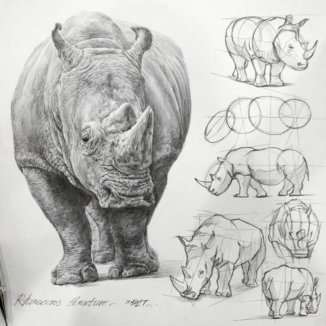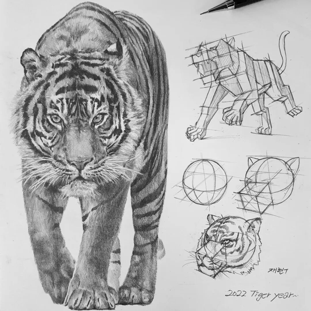 好了,让我们话不多说,一起来欣赏一下,安宰贤是如何由简到繁,从几个几何形状绘画出让人惊叹的超写实动物作品的吧。最后如果你也喜欢,想要欣赏更多关于这位老师的绘画作品请告诉小绛,小绛会陆续为大家带来更多关于这位老师其他类型素描作品。