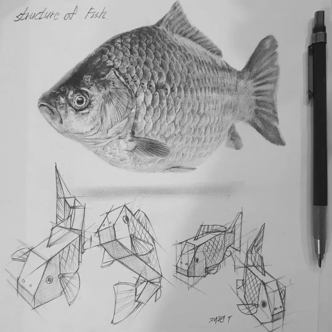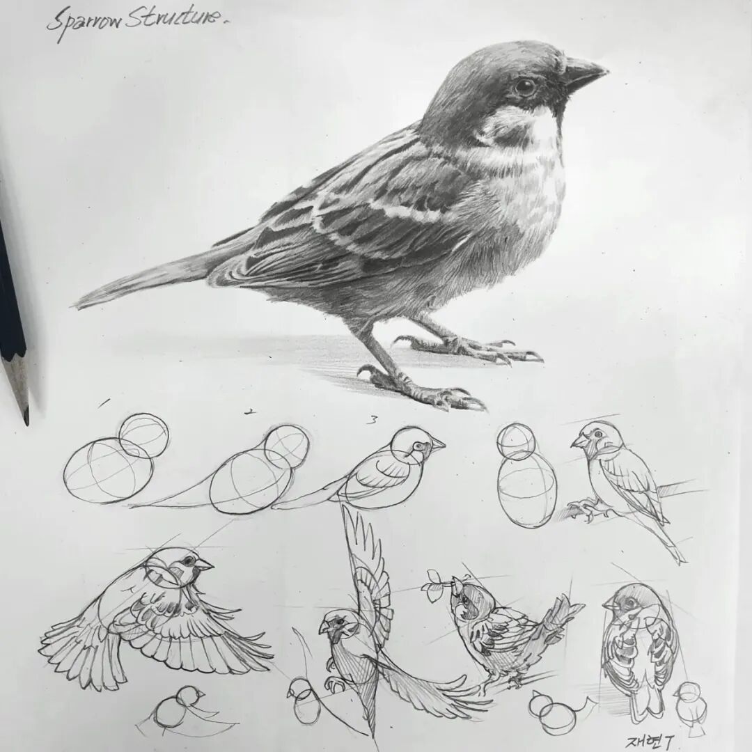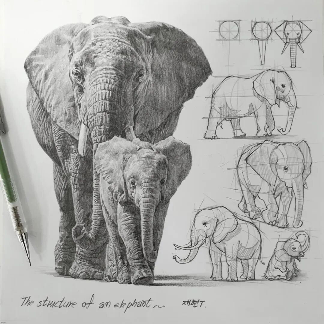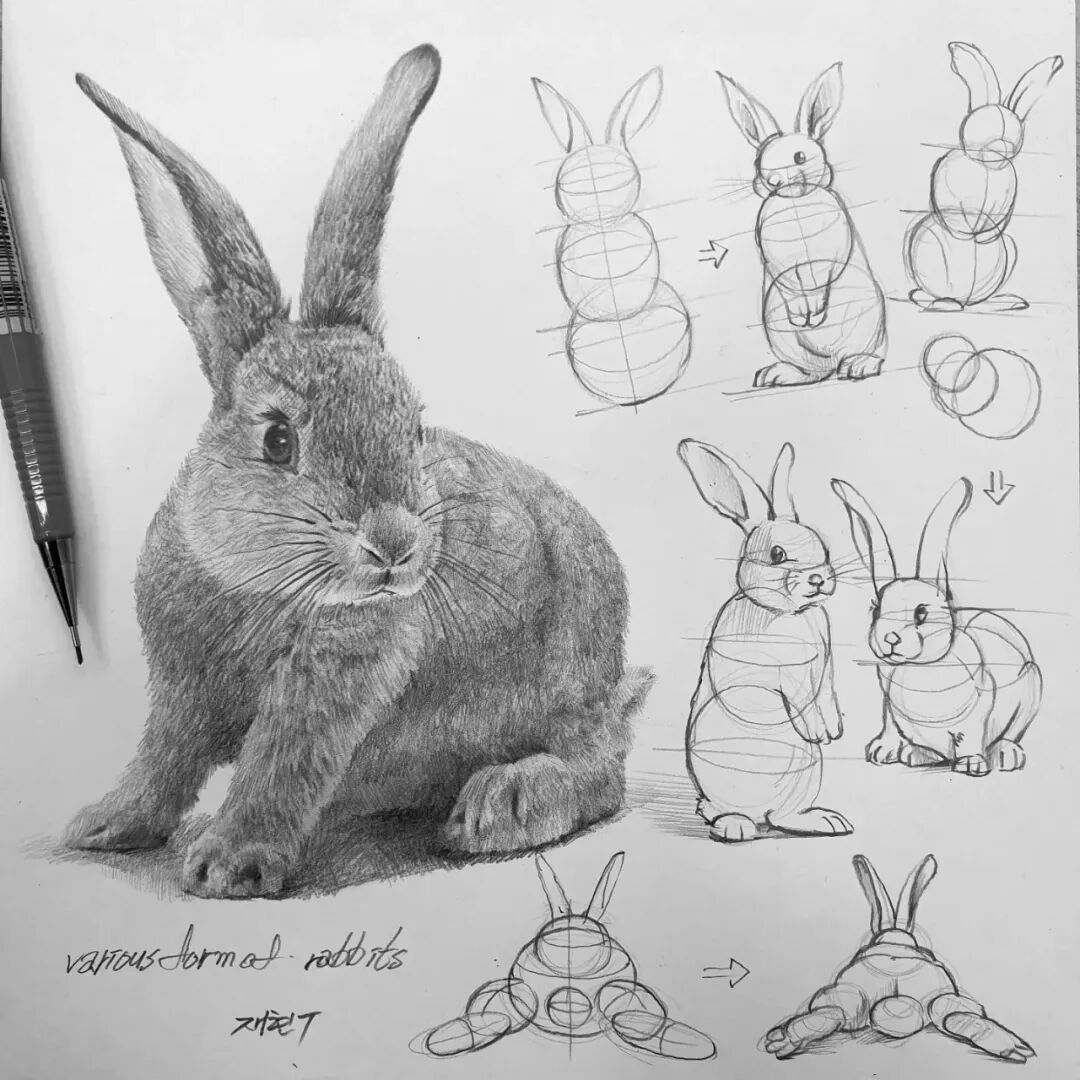 好了,让我们话不多说,一起来欣赏一下,安宰贤是如何由简到繁,从几个几何形状绘画出让人惊叹的超写实动物作品的吧。最后如果你也喜欢,想要欣赏更多关于这位老师的绘画作品请告诉小绛,小绛会陆续为大家带来更多关于这位老师其他类型素描作品。