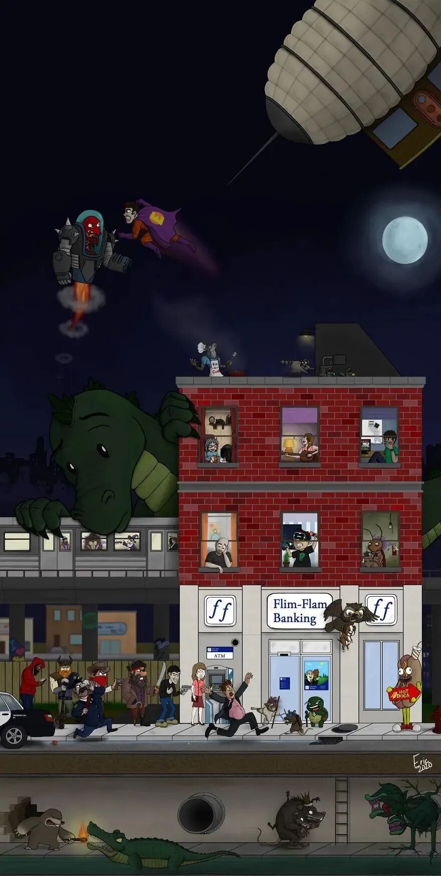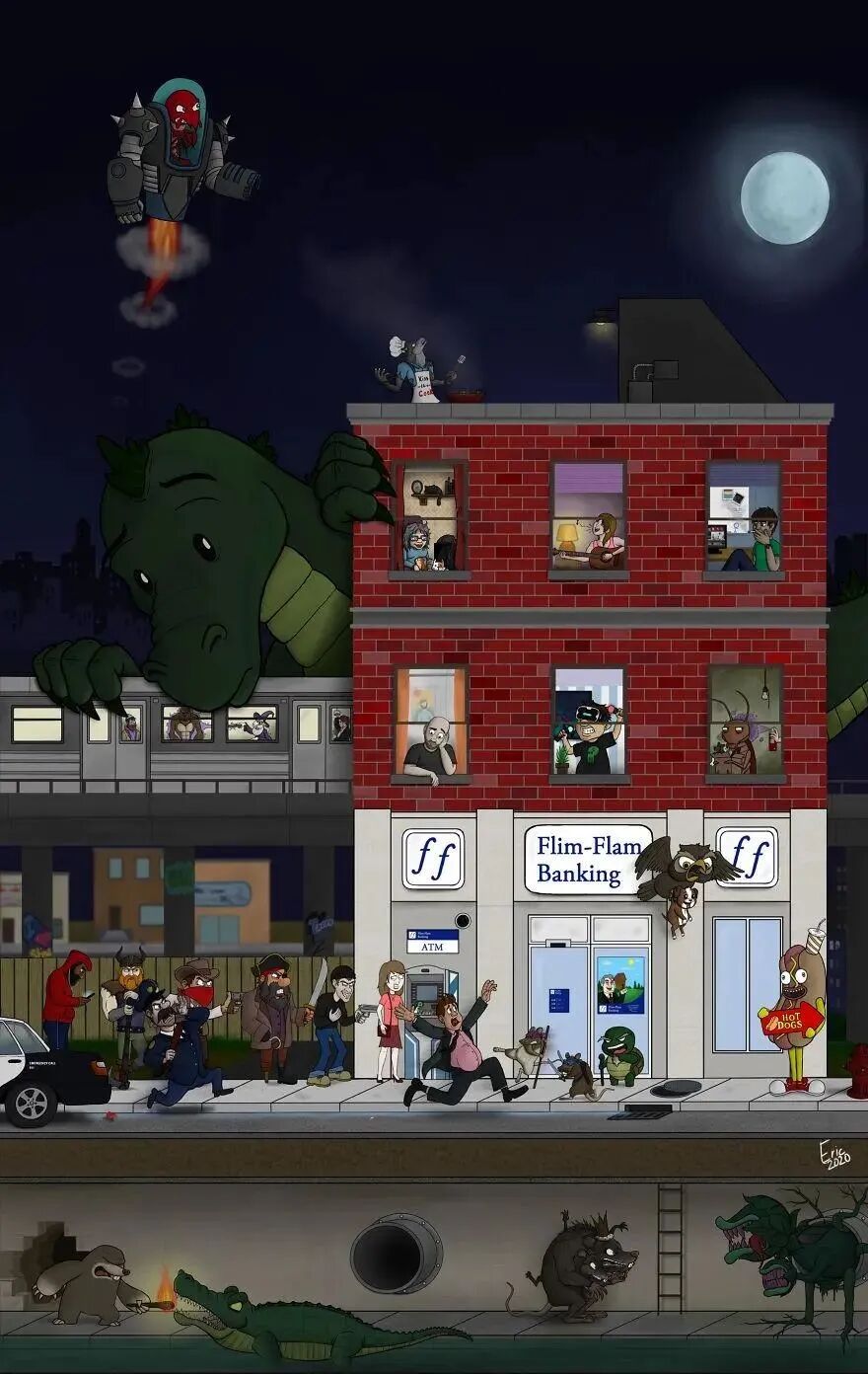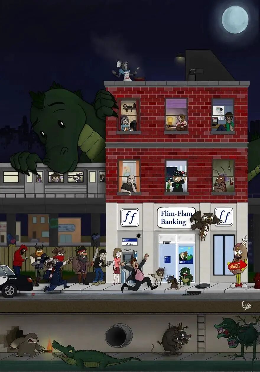 第三十天:一只巨型怪物也对取款机上发生的事情感到好奇。