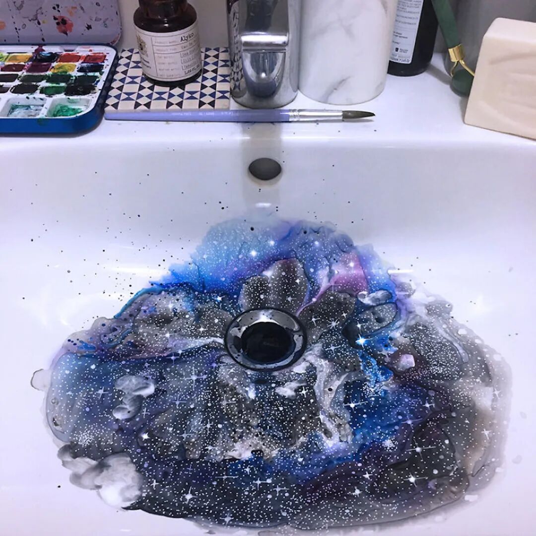 但是,这并没有妨碍玛塔·格罗西的创作热情,反而在她看来,越是停留时间短暂的作品,她越该认真对待,这样才不会辜负这些精彩的绘画过程。玛塔·格罗西总共创作了十多个有趣的水槽画作,每一个都十分精彩,比如憨态可爱的大熊猫,神秘感十足的星系,翩翩起舞的蝴蝶等等。