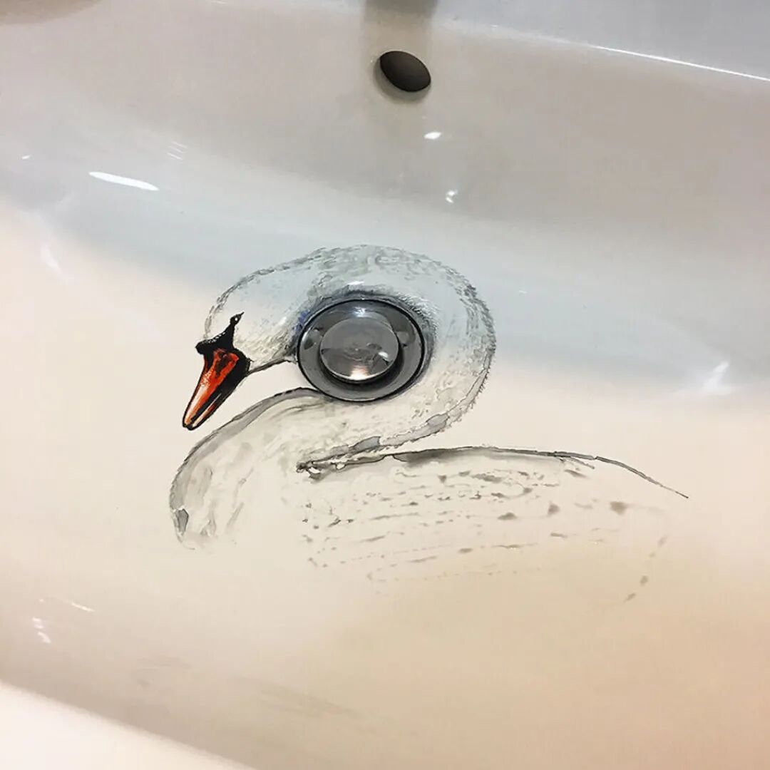这些有趣的作品,给玛塔·格罗西的家人也带来了很多惊喜,一成不变的生活里多了一抹色彩,让人看了心情也会变得好起来,再糟糕的生活也会燃起新的希望。接下来,就让我们一起看一下这些有趣的水槽画作吧。