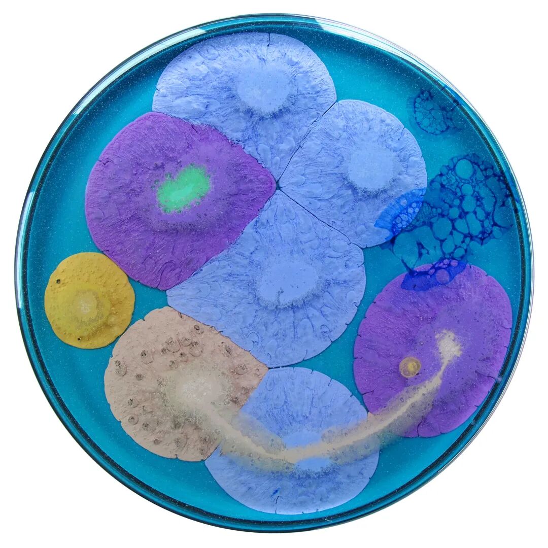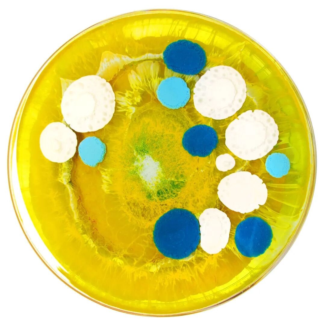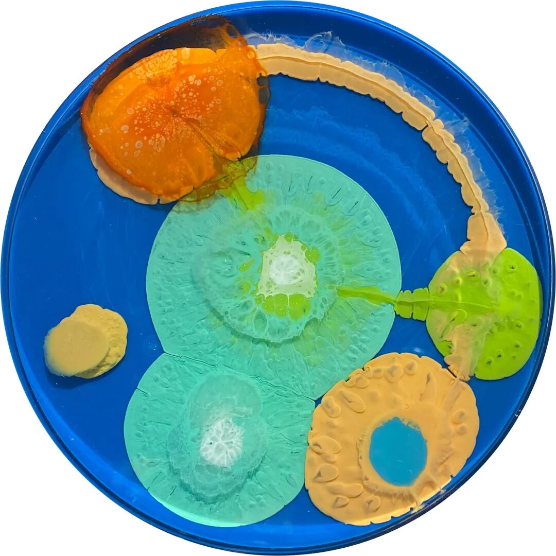 为了更好的仿照细菌的模样,克拉丽·赖斯在培养皿中绘画的时候,需要使用多种颜料,利用它们不相融的特点进行创作,每一幅细菌画都非常精彩,接下来就让我们一起来欣赏一下吧。