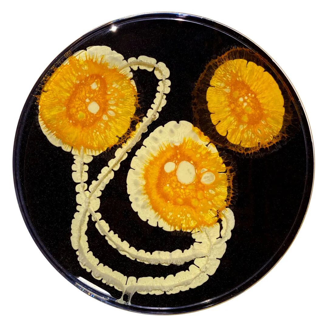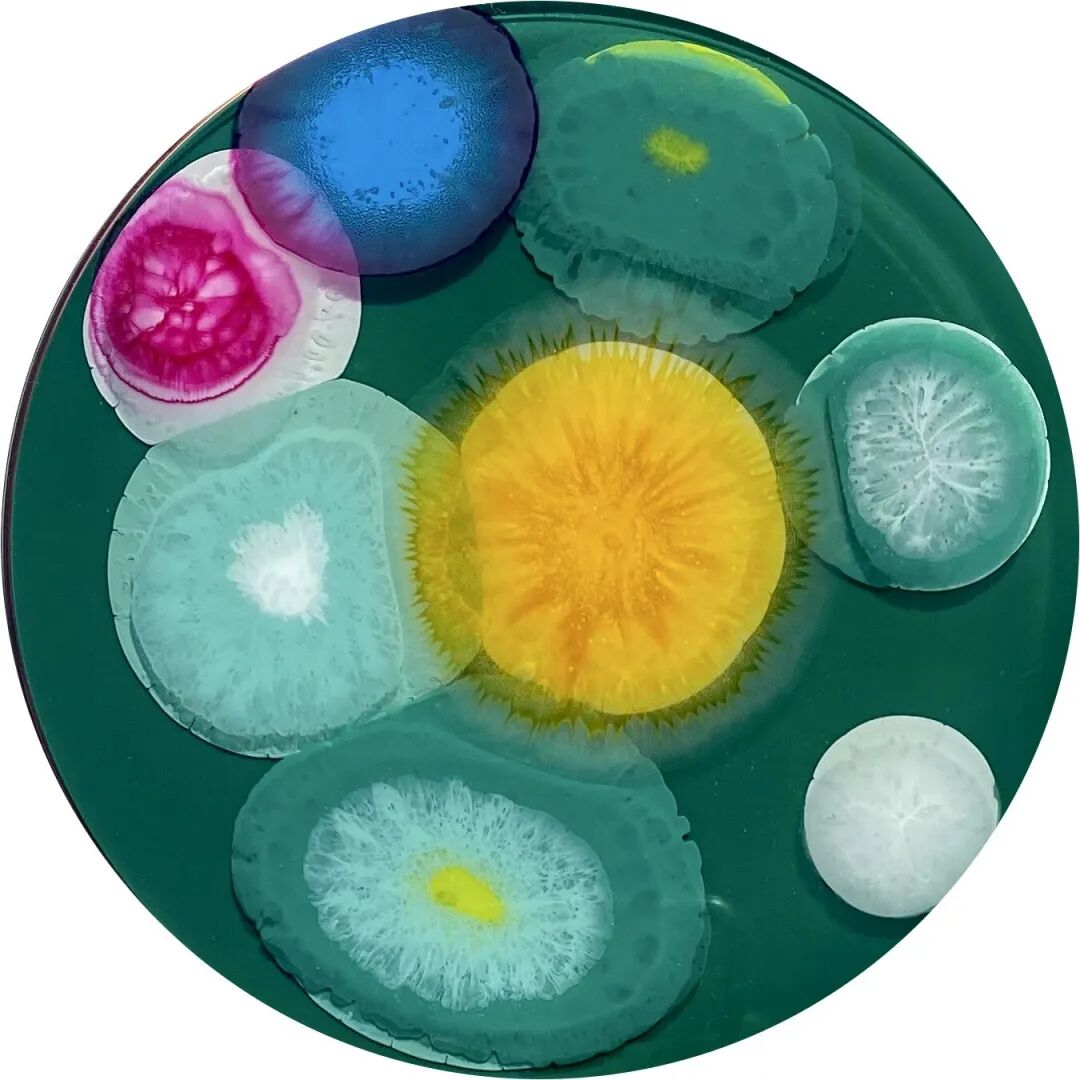 把生物技术和绘画融合为一,是克拉丽·赖斯抽象画作最大的特征,她的画作就像是描绘细菌成长。而画作的载体就是一个个生物专家使用的培养皿,这种工具往往是用来培养细胞和藻类成长的圆柱体容器。