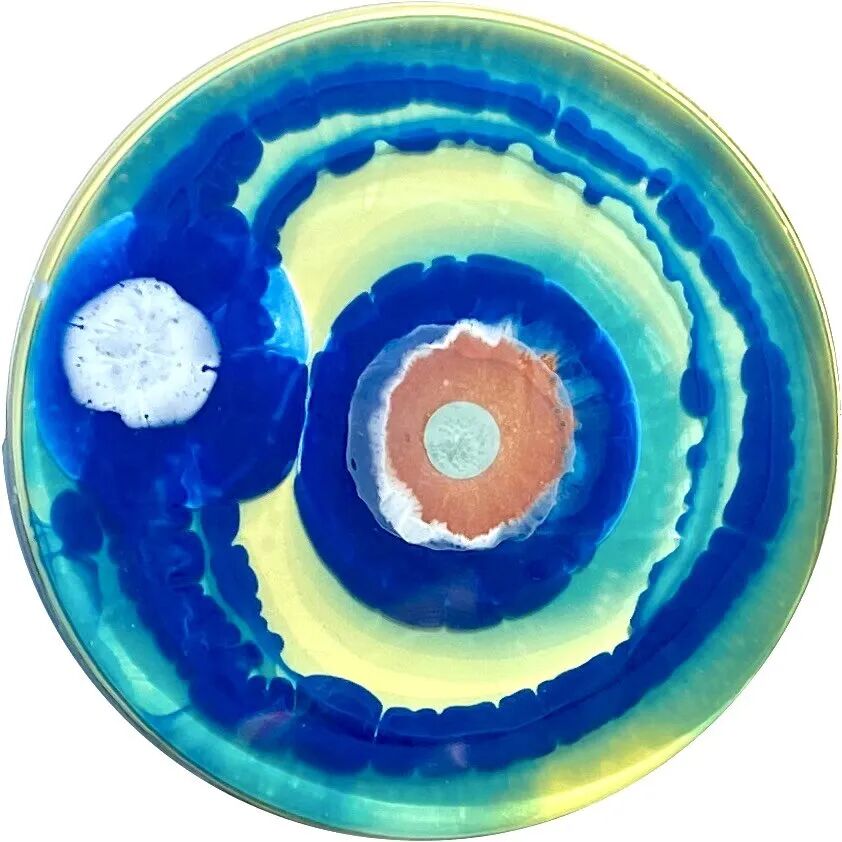 这一尝试,就让她开启了用培养皿绘画的艺术人生,克拉丽·赖斯的细菌画作并不是随意而为,而是根据生物医学公司培育的各种细菌创作而成,不了解这些画作的人,一定会将它认为是真正的细菌画作,实际上,这只是克拉丽·赖斯用颜料模仿出来的细菌图案。