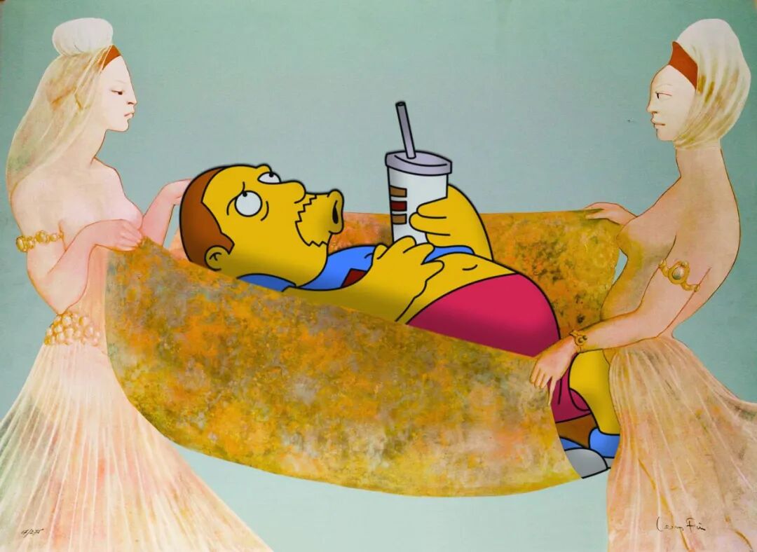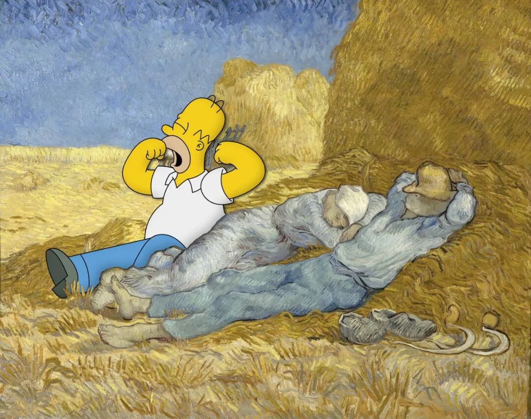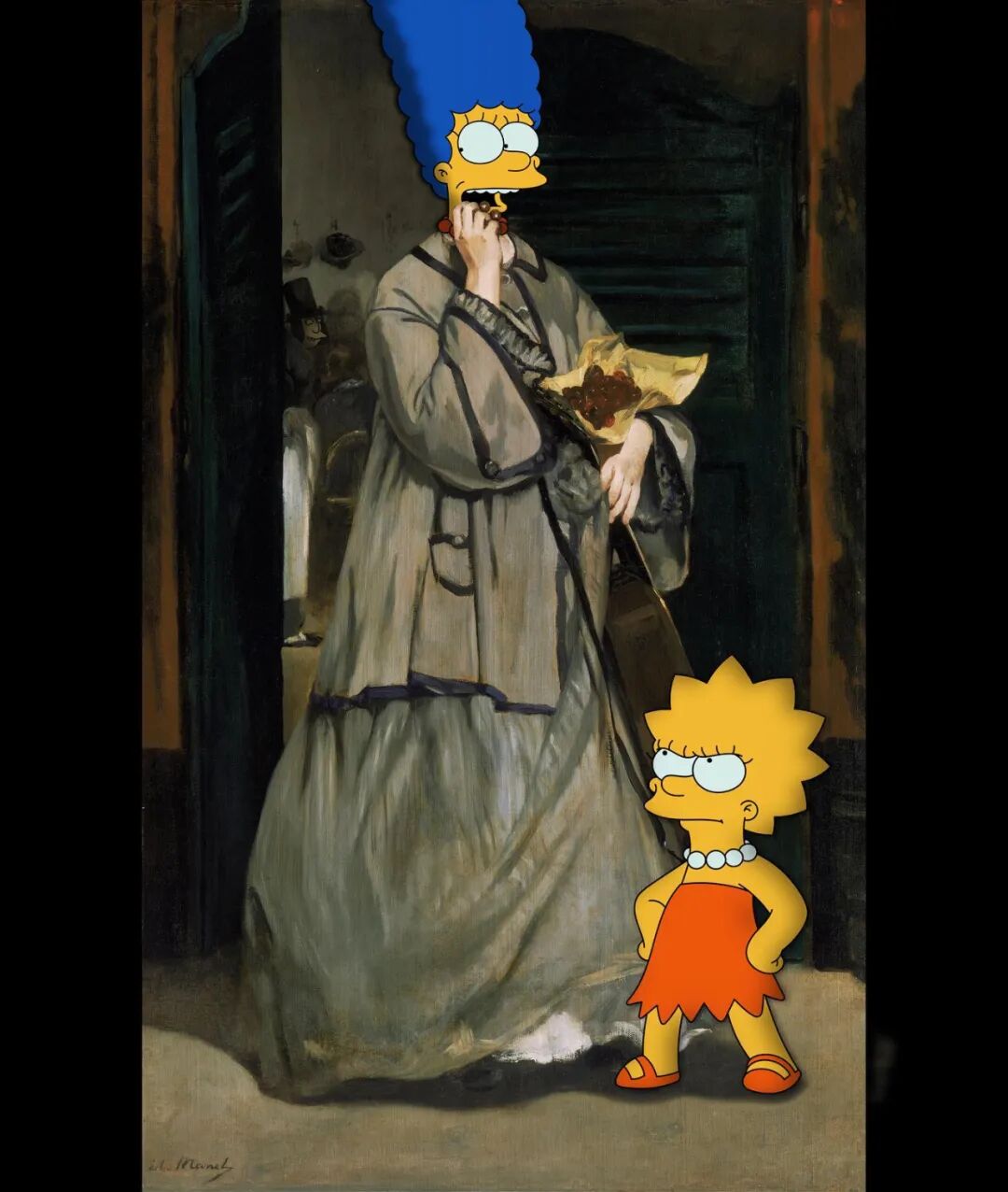 创作过程并不算复杂,这位插画家会事先选择好《辛普森一家》的角色,然后与不同流派的绘画作品融合到一起,经过融合后的绘画作品,不仅给人带来幽默的感觉,有的还改变了原本作品的含义,让人有了另外一种解读。