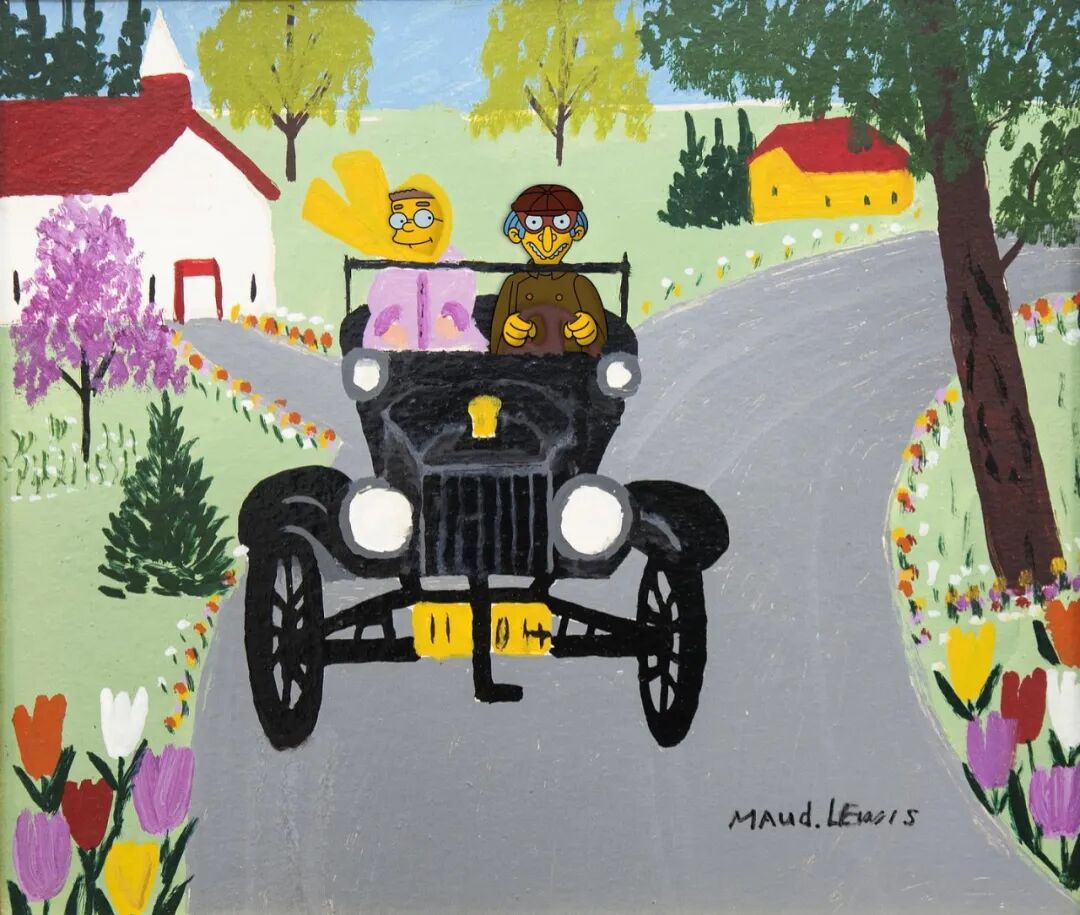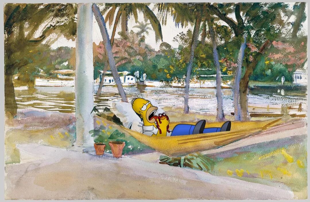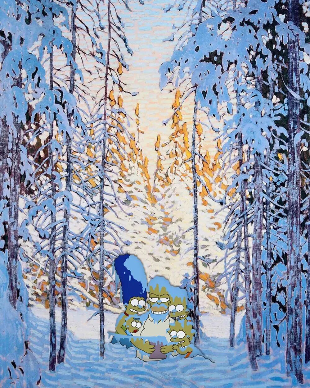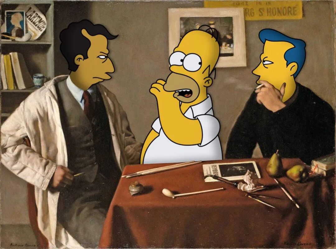 创作过程并不算复杂,这位插画家会事先选择好《辛普森一家》的角色,然后与不同流派的绘画作品融合到一起,经过融合后的绘画作品,不仅给人带来幽默的感觉,有的还改变了原本作品的含义,让人有了另外一种解读。