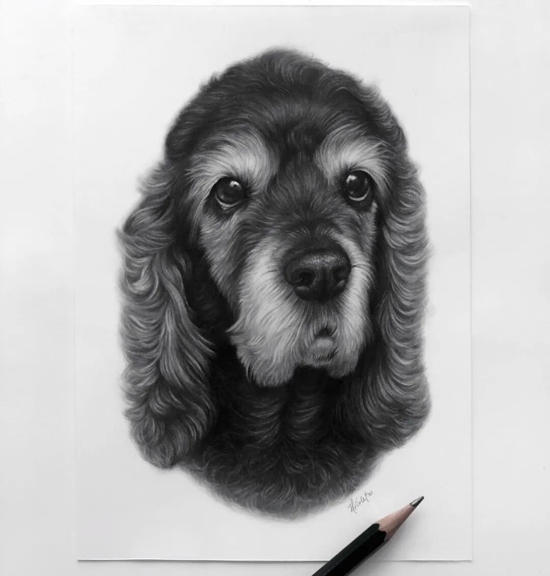 在绘制宠物狗类型的超写实素描画作,海伦·维奥莱特可以说做到了极致,主要就是因为她的专注,看到她的作品后,相信你一定会感叹,这就是专业画狗的超写实素描画家,才能刻画到的程度,接下来,我们就一起欣赏一组精彩的作品吧。