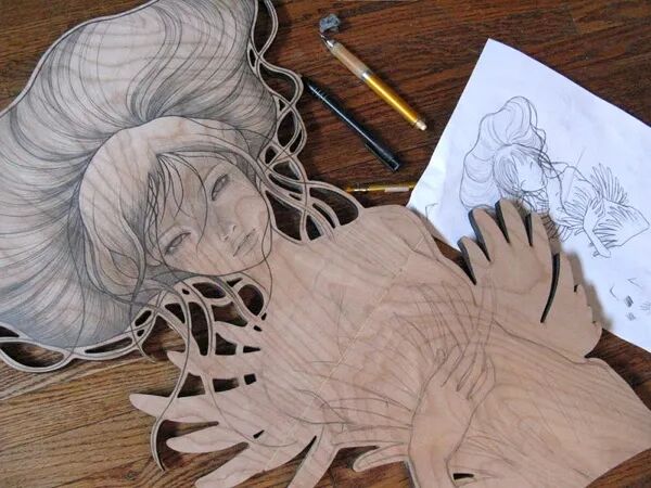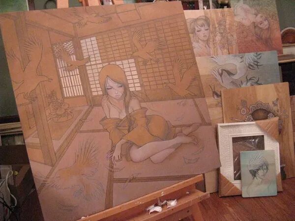 接下来,就让我们一起来看看这位插画家在木板上绘制的精彩作品吧。