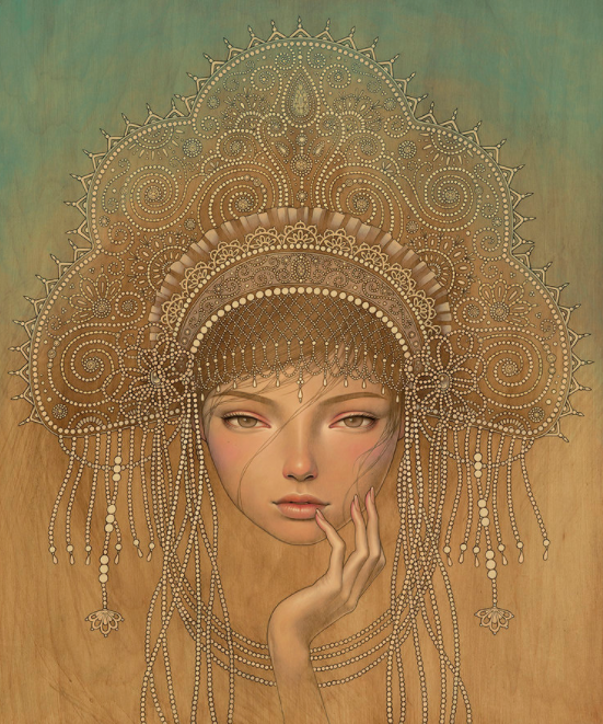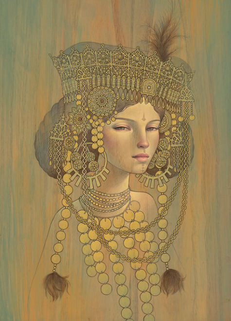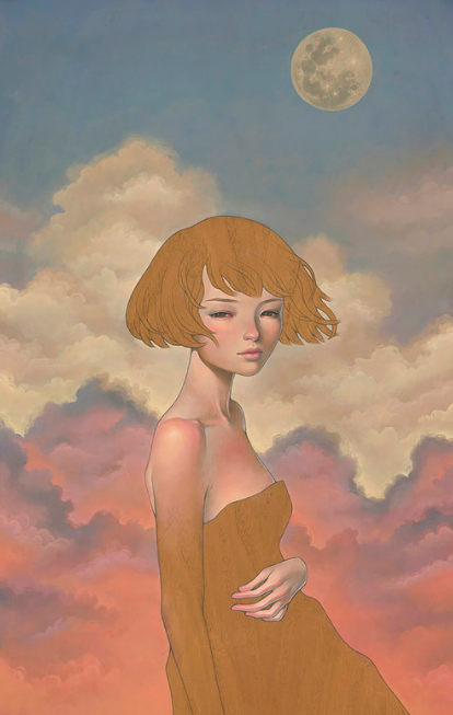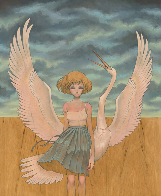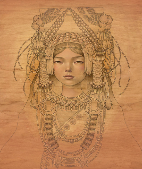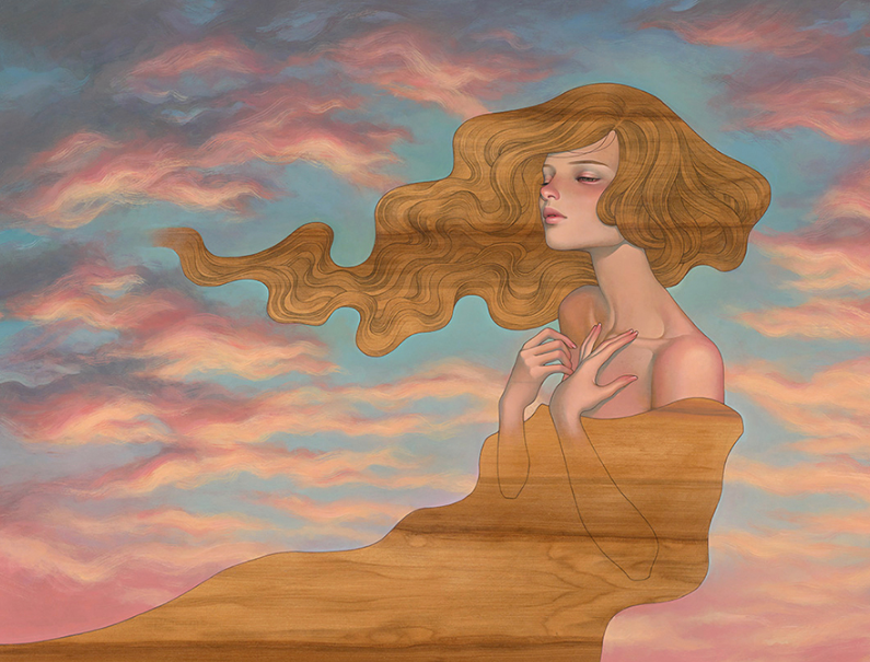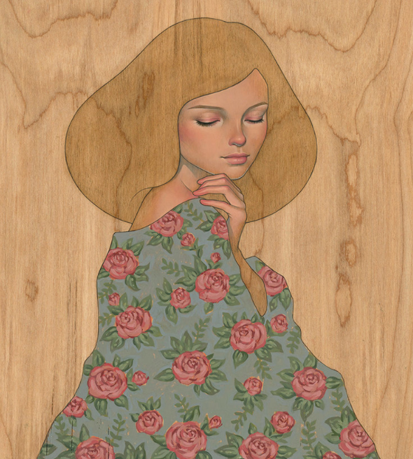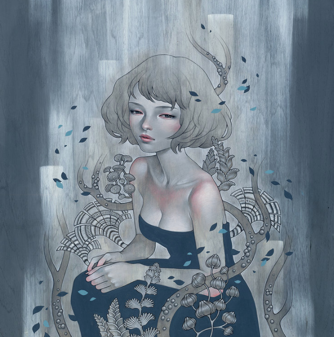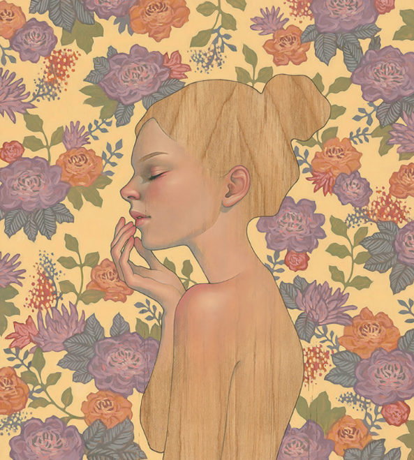 叛逆的川崎奥黛丽,在绘制插画作品时,也与许多插画家不同,她选择的绘画材料大多是木板,木板上的条纹对川崎奥黛丽来说非常具有吸引力,在她的作品中,我们常常可以看到川崎奥黛丽将插画作品和木板原本的条纹结合到一起的画作,木板上天然的条纹,给她的插画作品增加了一丝生命力,从她的插画作品中我们可以看到女性的魅力。