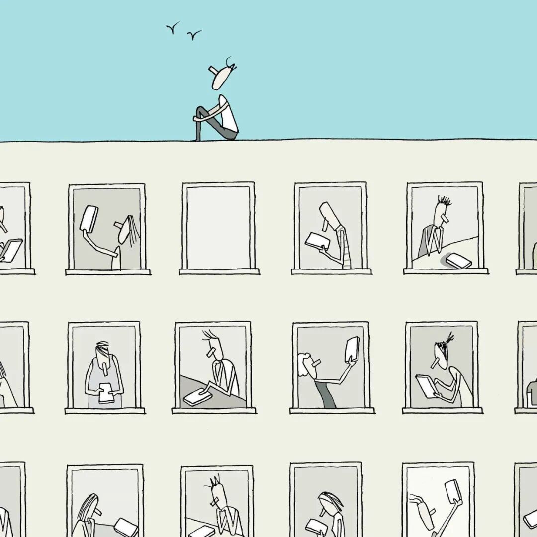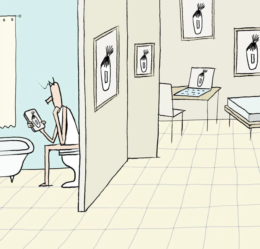 之所以在前面说这么多,就是想为大家先介绍一下这位艺术家及他的精彩作品,他的名字叫尤瓦尔·罗比切克,相信喜欢插画和漫画的朋友对于这个名字并不陌生,这位艺术家来自以色列,他凭借极简风格的插画作品,赢得许多人的喜爱和欢迎,当然小绛也是其中之一。