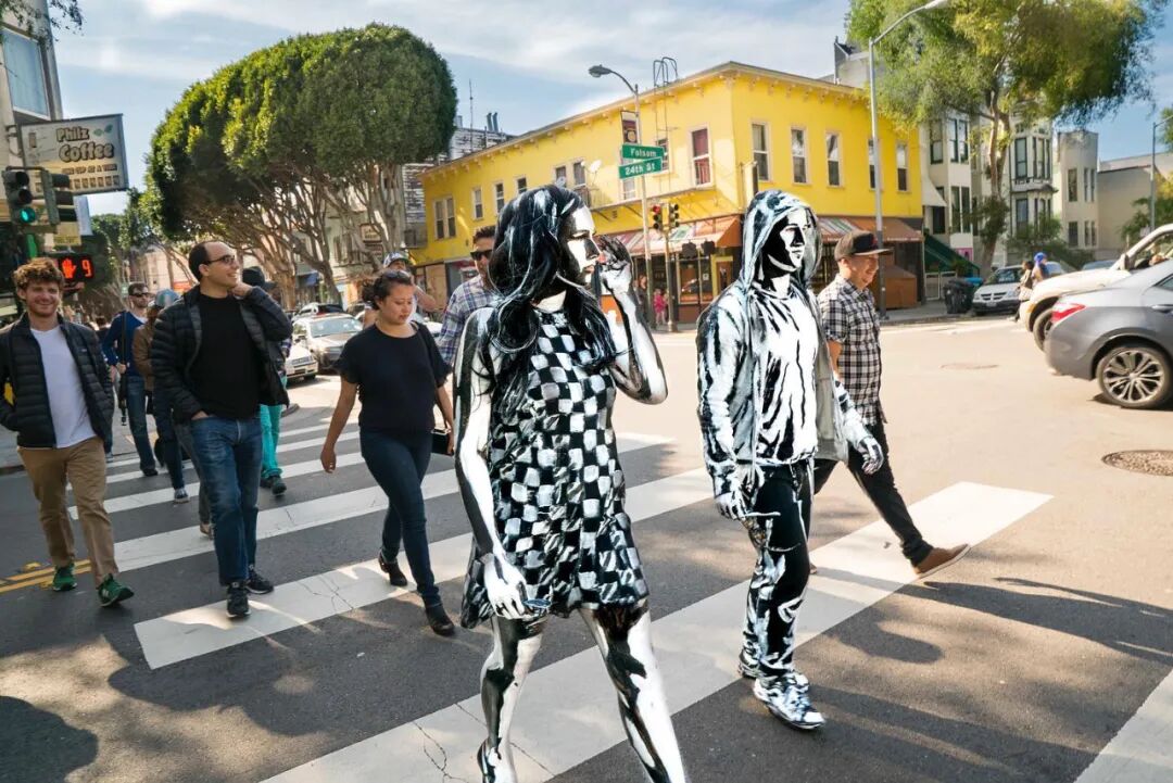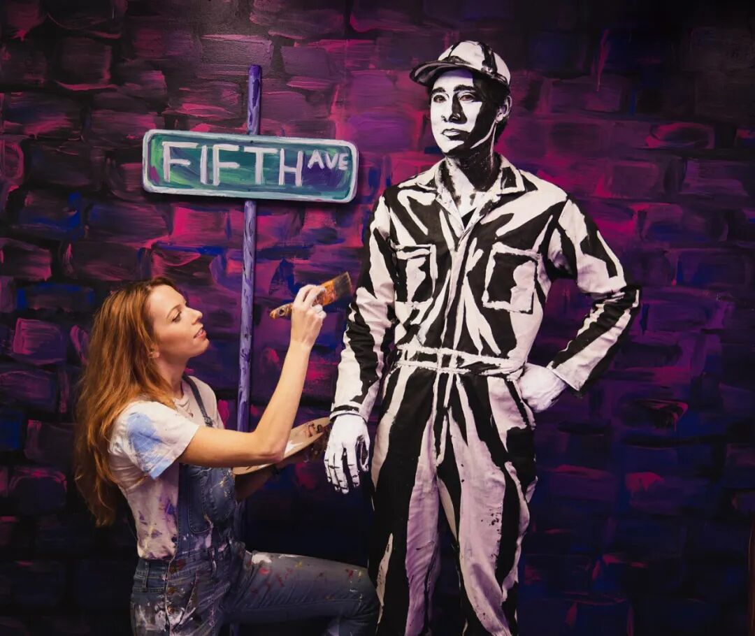 独特的人体彩绘绘画方式,再加上精细的场景打磨,如果没人提醒我们,这是一幅人体彩绘作品,相信绝大多数的人都会将其误以为是一幅画作。这些特别的人体彩绘作品,不仅出现在亚历克莎·米德的工作室里,还经常出现在热闹的大街上。她将绘制完成的模特们带到户外,静止不动的人体彩绘模特,就像一幅涂鸦作品,当他们走动起来后,相信每一个路人都会被吓一跳。