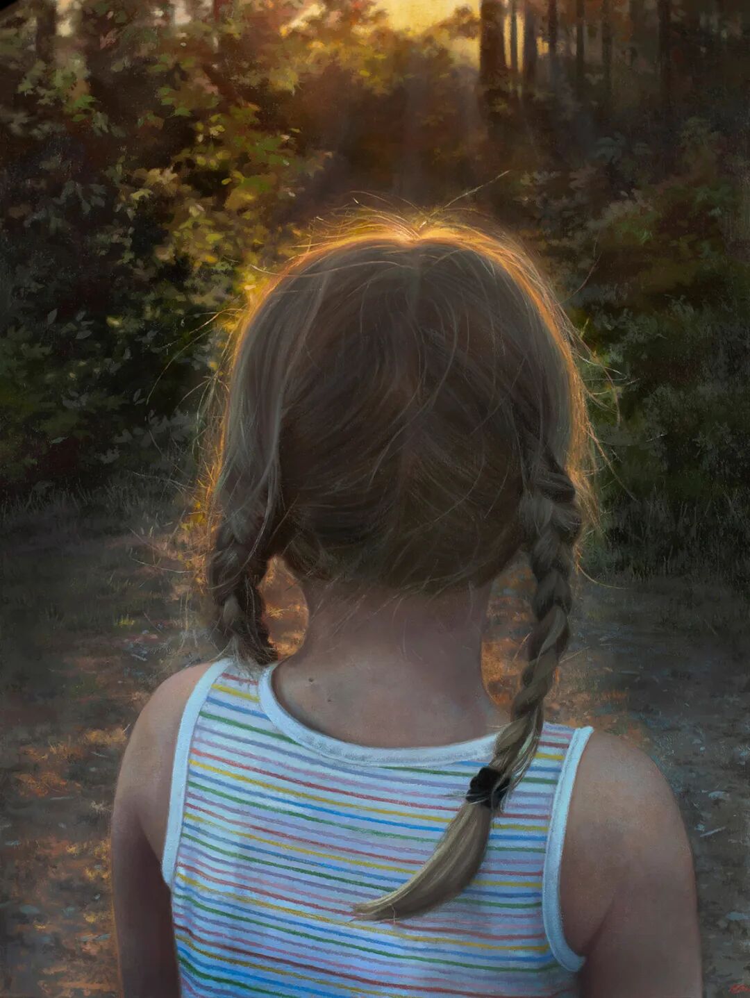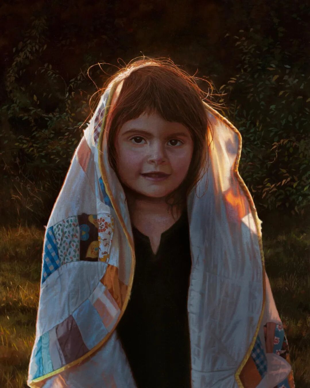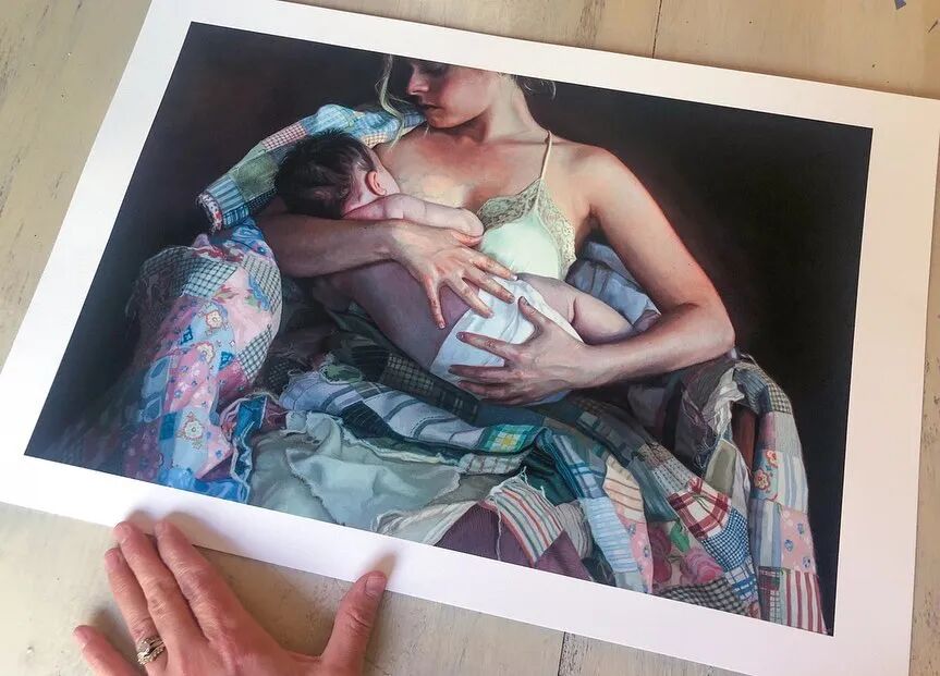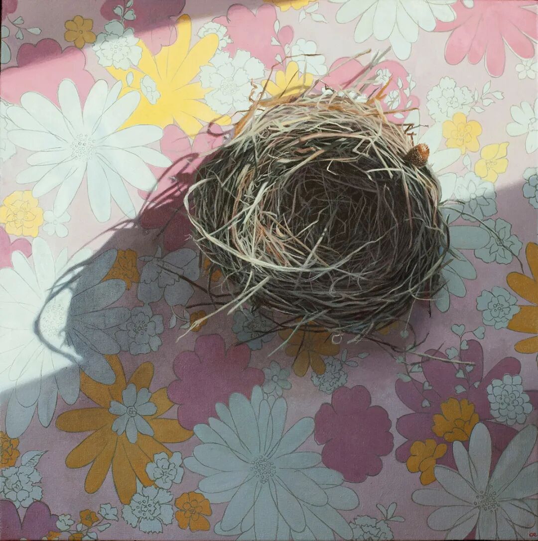在这组作品中,我们可以看到辛迪·里扎将笔触对准了家庭里的不同角色,母亲、孩子,还有老沙发、旧毛毯,以及院子里的树上被小鸟筑过的巢等等,我们不难看出,这组作品还是在描绘旧时光,暖暖的光洒在几十年前的人和物上,带给观众一种温暖的感觉,忍不住跟着陷入自己儿时的时光中。