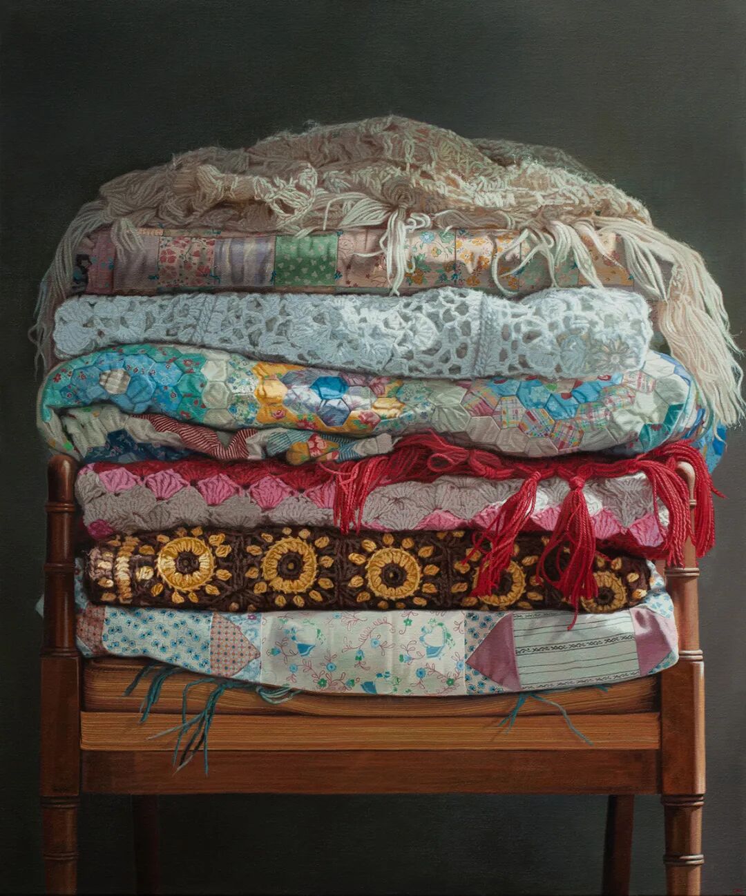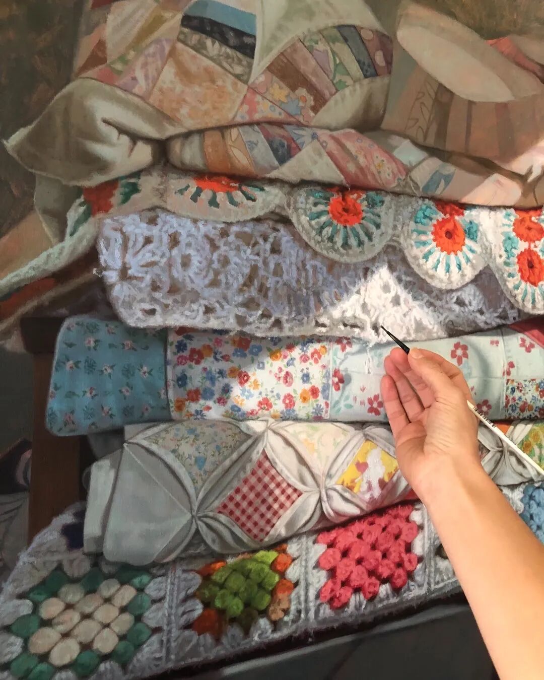 前段时间,小绛给大家介绍过一位写实油画家,她的名字叫辛迪·里扎,这位女艺术家的作品就带给人们很多的触动,她将笔触对准了几十年前的陈旧衣物,描绘的贴身衣物面料轻盈、柔软,在微风的吹拂下,将衣物的清新味道送到我们的眼前,也将儿时的美好回忆一并带给了我们。