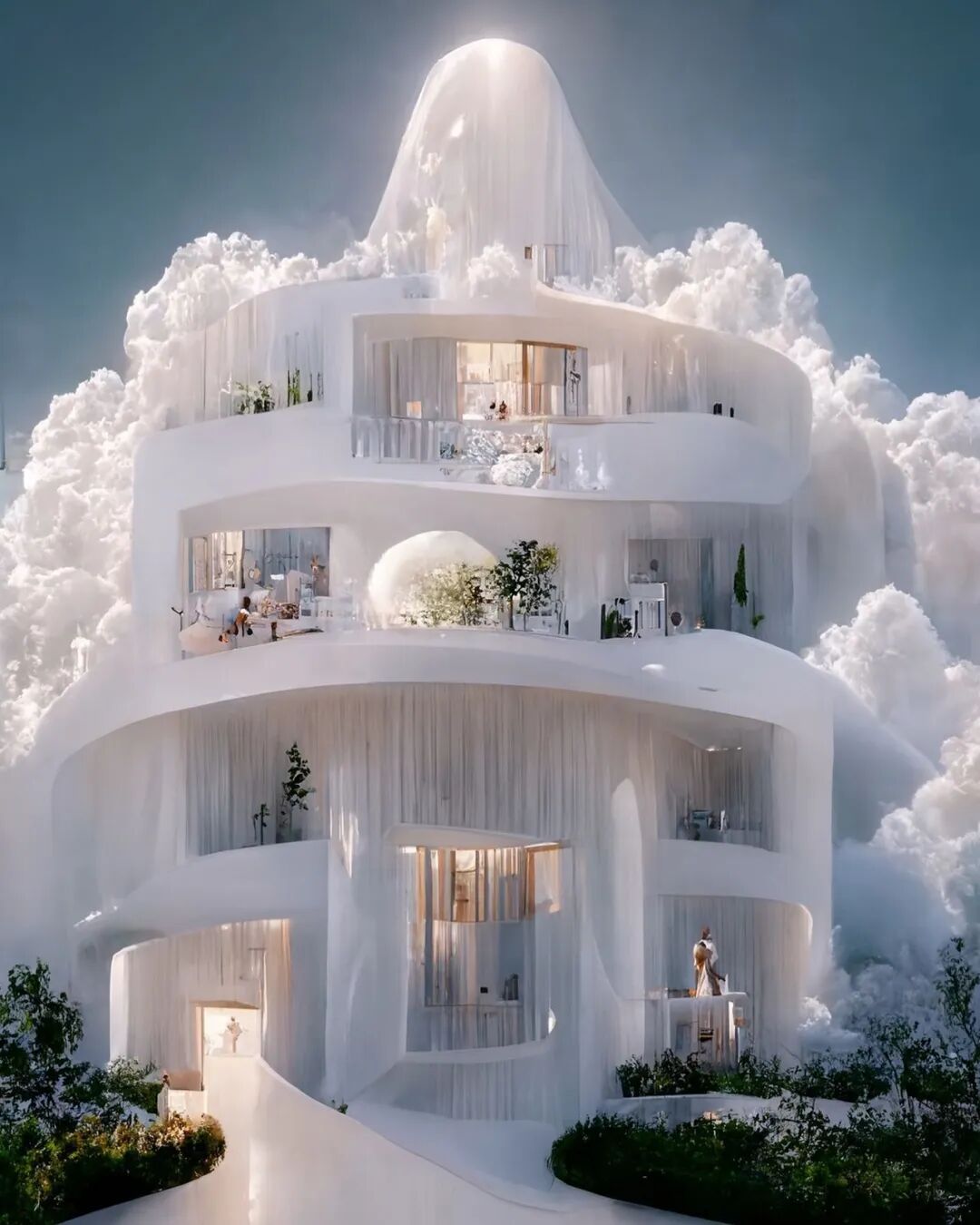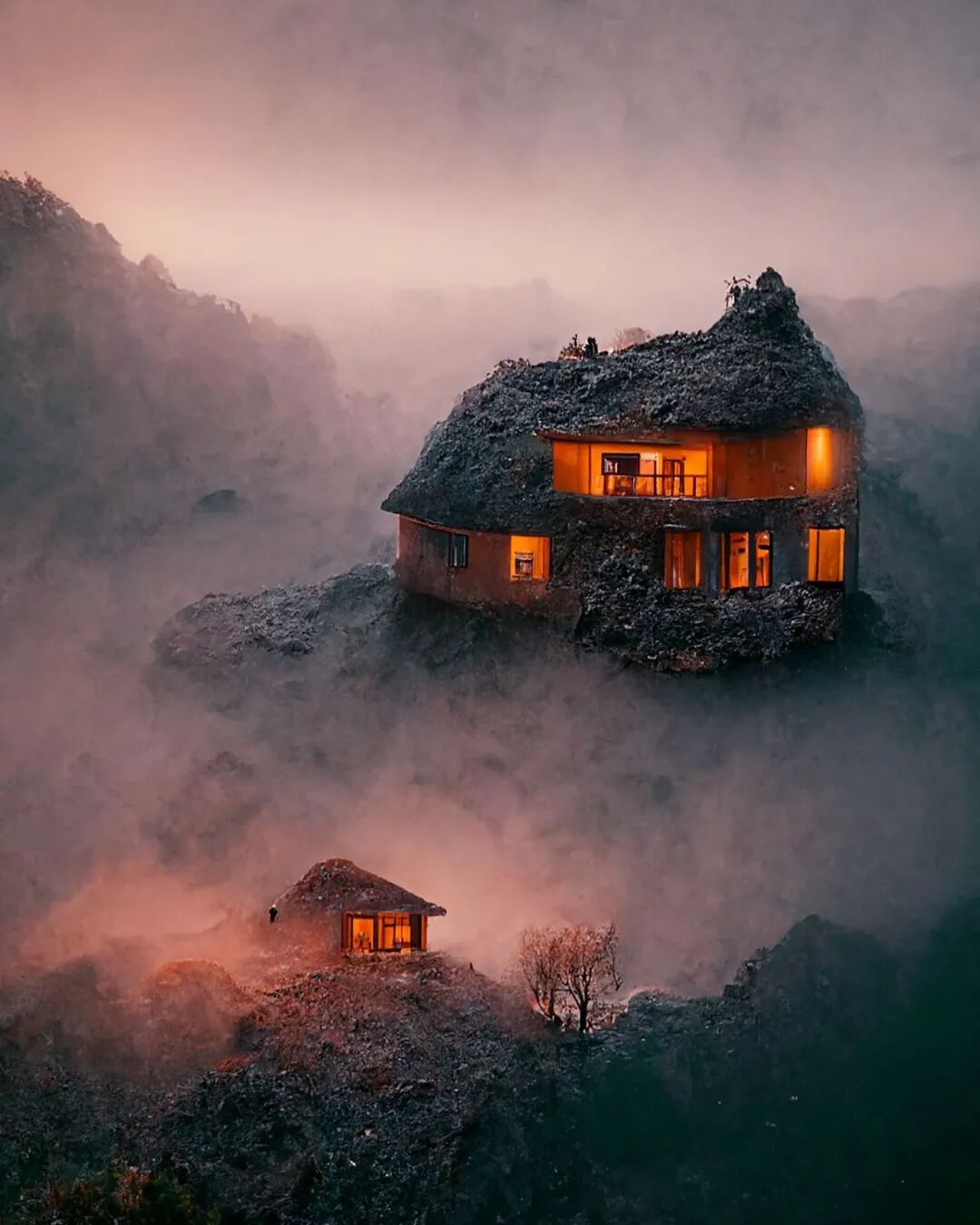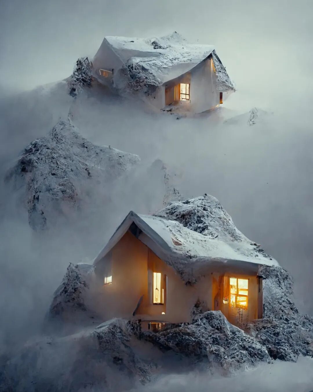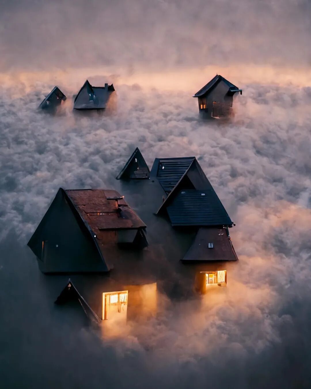 在外国,就有不少人利用人工智能这一特点去要求人工智能绘制出一幅幅不寻常的画面出来,借着这一主题,今天,我们来看一组关于人类房屋的创意作品,它源自人工智能绘画,在这些绘画作品中,我们可以看到云朵房子、冰山房子和水下房子。