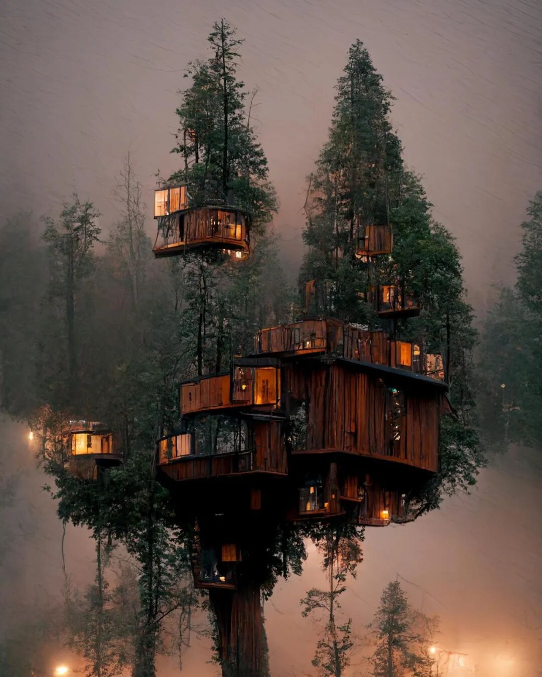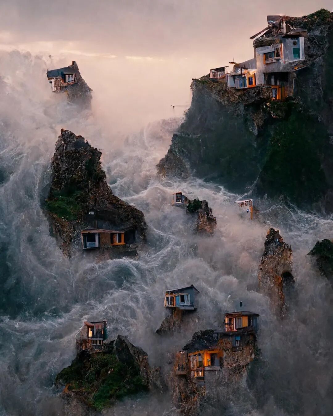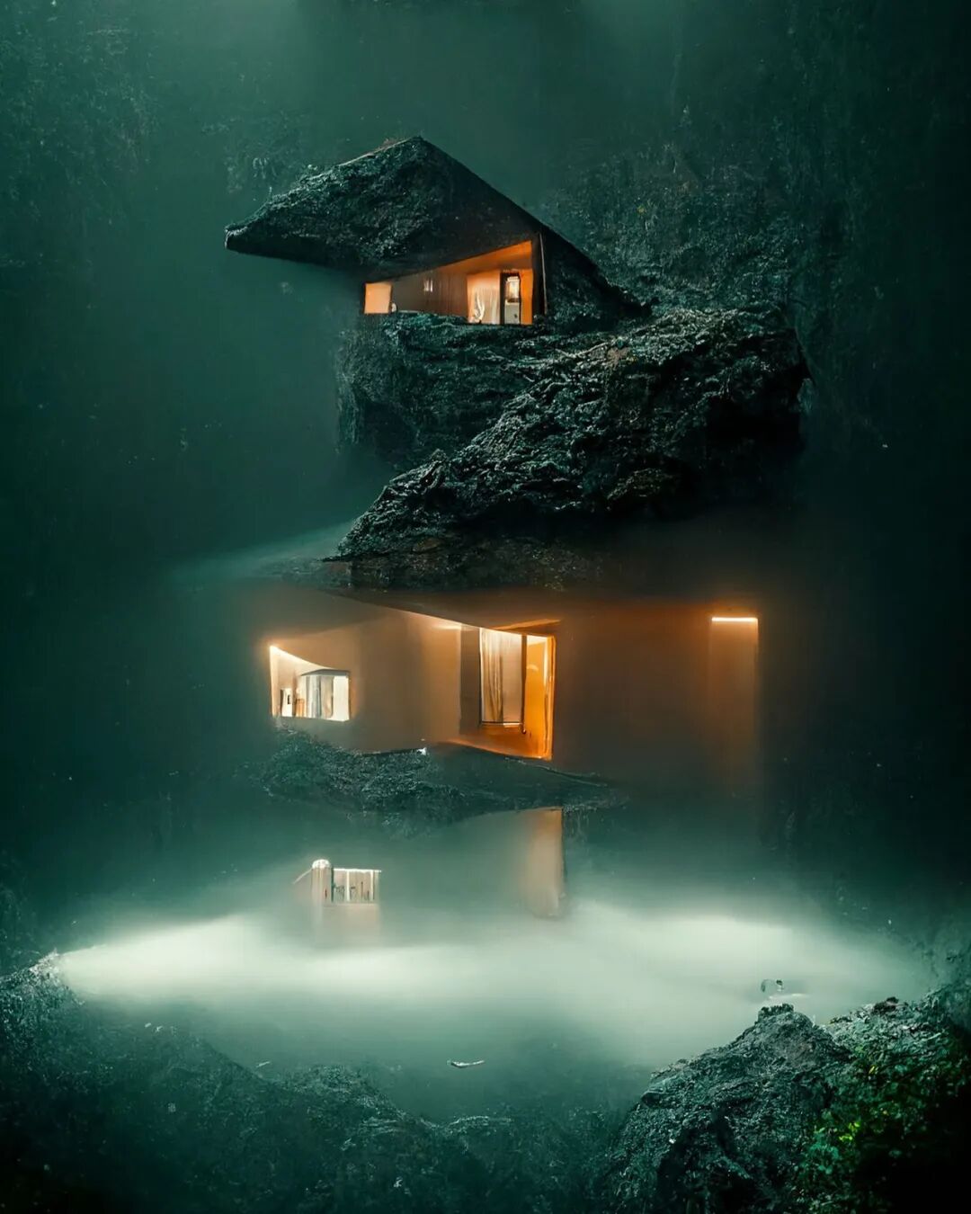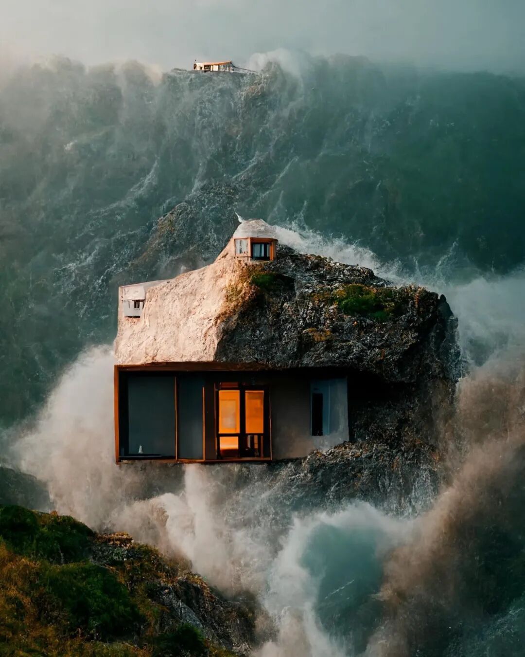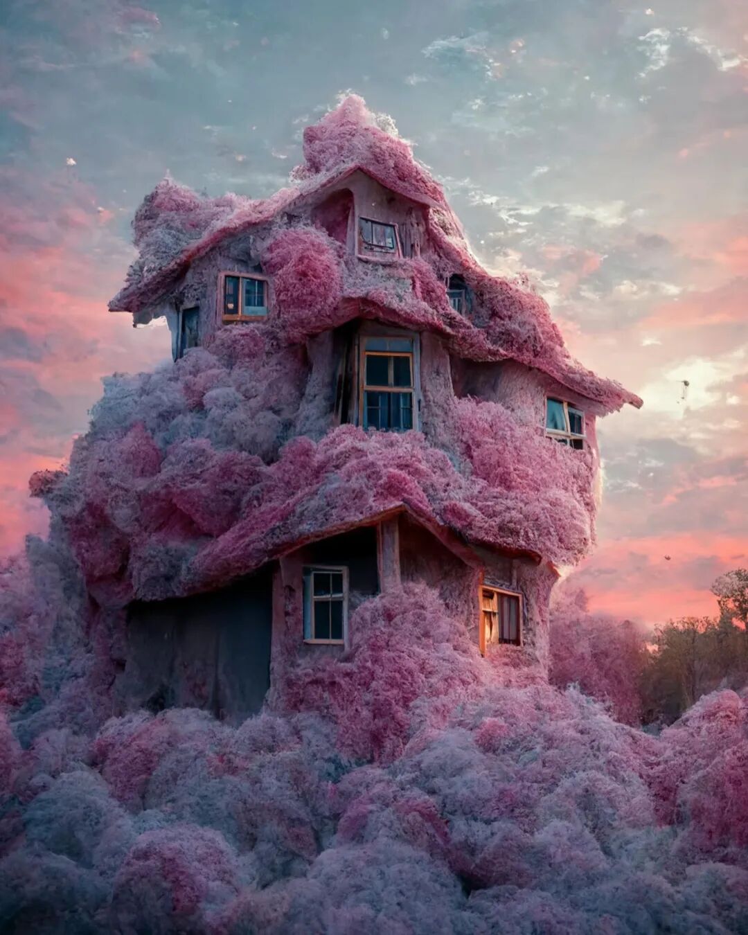 在外国,就有不少人利用人工智能这一特点去要求人工智能绘制出一幅幅不寻常的画面出来,借着这一主题,今天,我们来看一组关于人类房屋的创意作品,它源自人工智能绘画,在这些绘画作品中,我们可以看到云朵房子、冰山房子和水下房子。