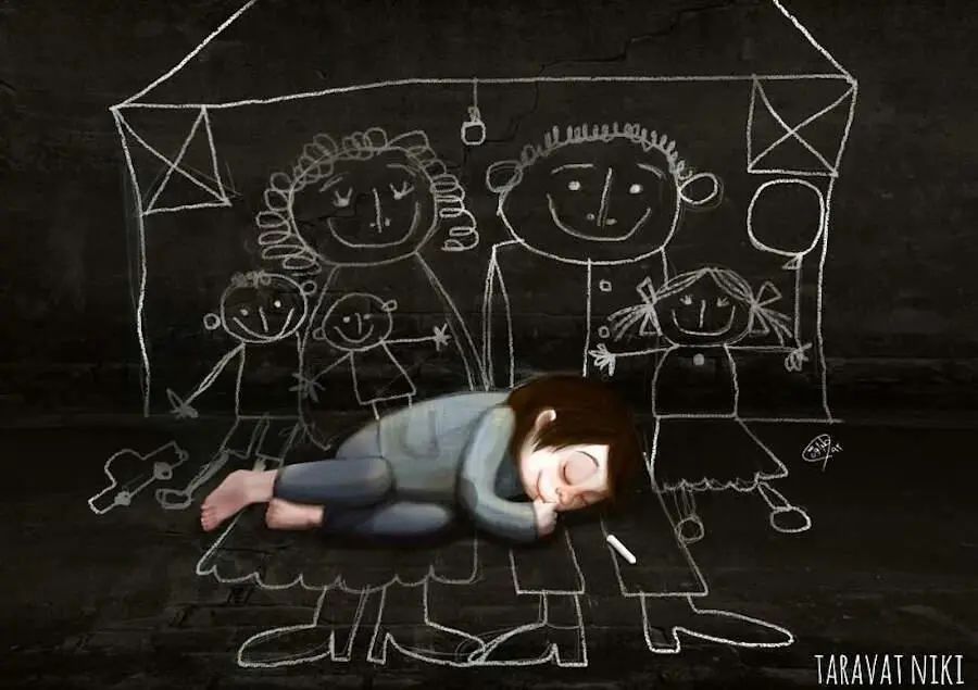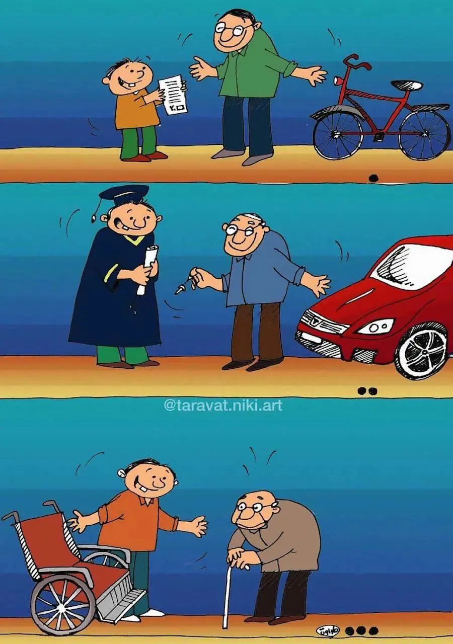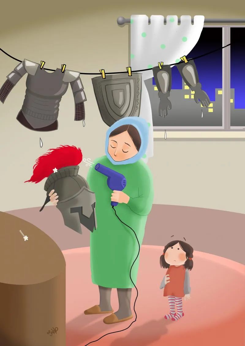 来自伊朗的插画家塔拉瓦特·尼基,就创作出许多幅关于孩子教育的哲理插画作品,虽然我们与伊朗的生活和文化环境不同,不过,在父母教育孩子这个问题上,有很多相似之处,让人感叹可怜天下父母心。