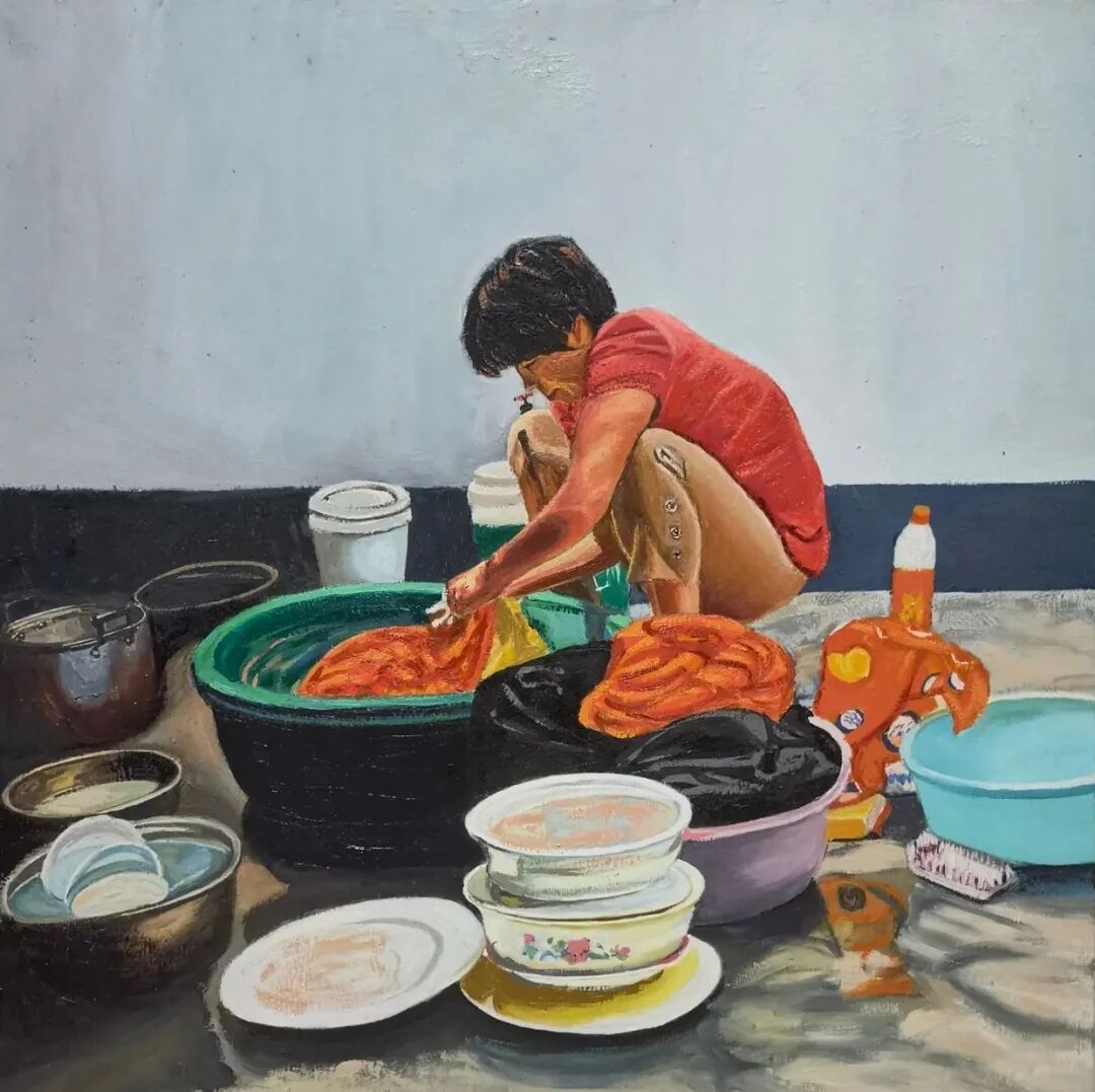 热腾腾的灶台,穿破洞袜子的老人,以及大清早忙碌的油条果子摊,欣赏这些绘画作品,让我们变得不再那么焦虑与不安。