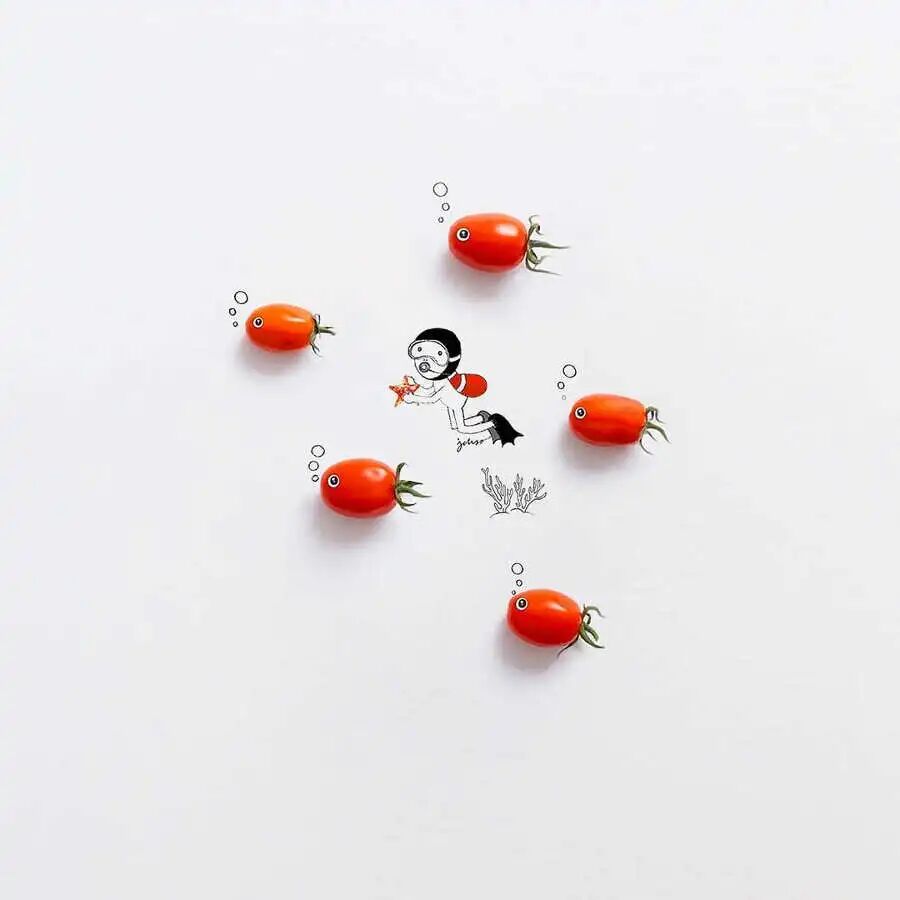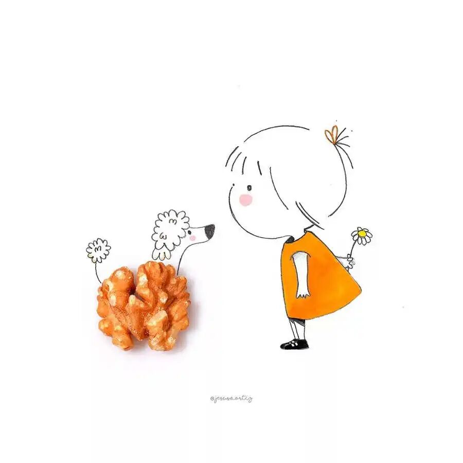 艺术作品能让人感到更快乐,这在小绛看来,就是最大的价值。今天,要介绍给大家的这位创意插画家,就从平凡生活中获取灵感,将普通物品变成了充满童趣的插图,树叶、核桃、小番茄甚至小纽扣,都被这位西班牙艺术家郝苏斯·奥尔蒂斯当成了艺术创作的一部分,一半实物,一半人物涂鸦,最终结合成了一幅幅创意十足的趣味场景插画。