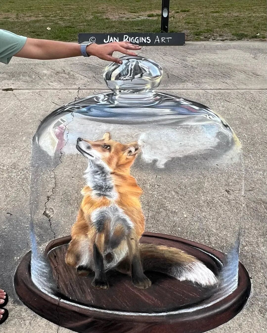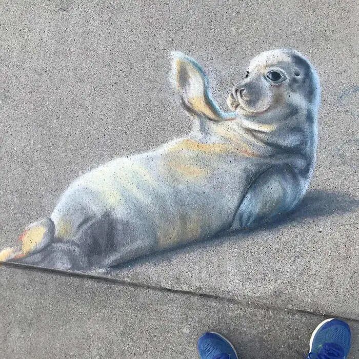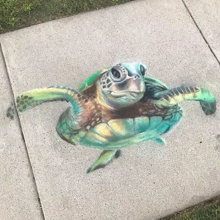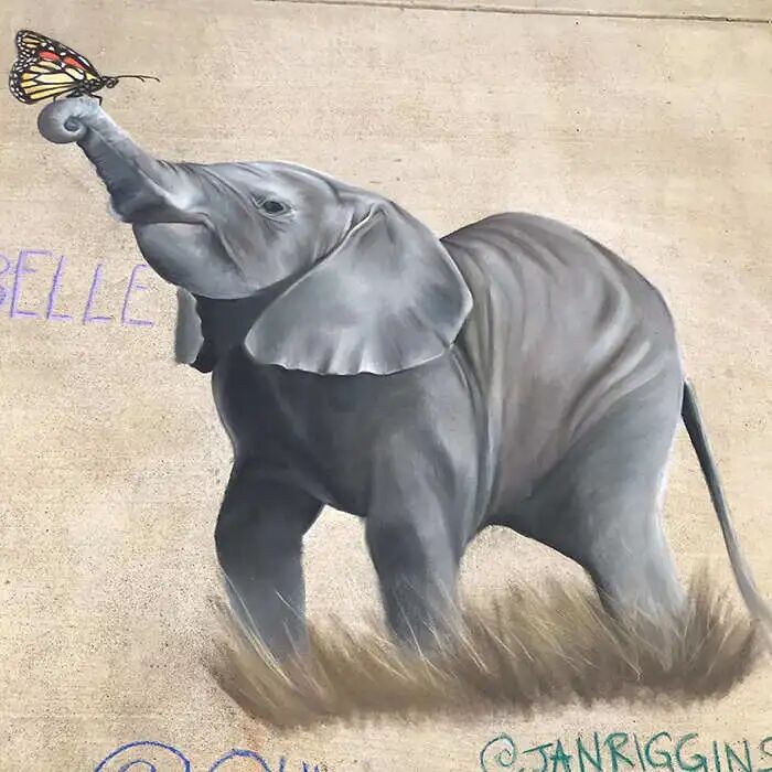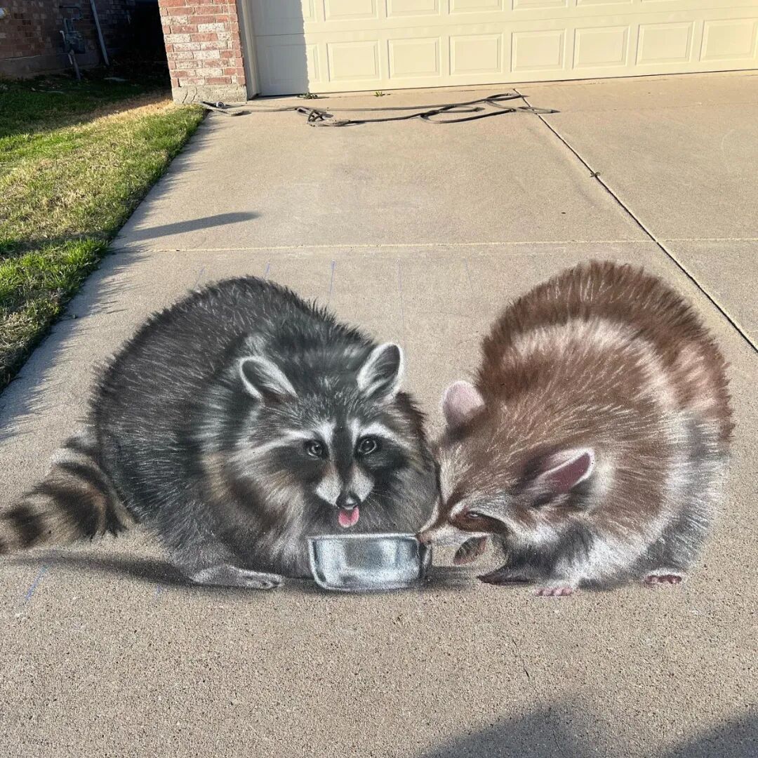 简·里金斯是一位专业画家,她擅长使用各种媒介来创作动物肖像,其中包括水彩画、油画颜料以及彩色粉笔等等,受其影响,女儿奥利维亚在3岁时,就拿起画笔跟着她一起涂鸦了,如今,她们两个人是最默契的组合,一起创作了众多栩栩如生的3D动物粉笔画,有时候她们会去公共场所绘画,但大部分时间,她们都是窝在自家后院里,不受干扰地进行创作。