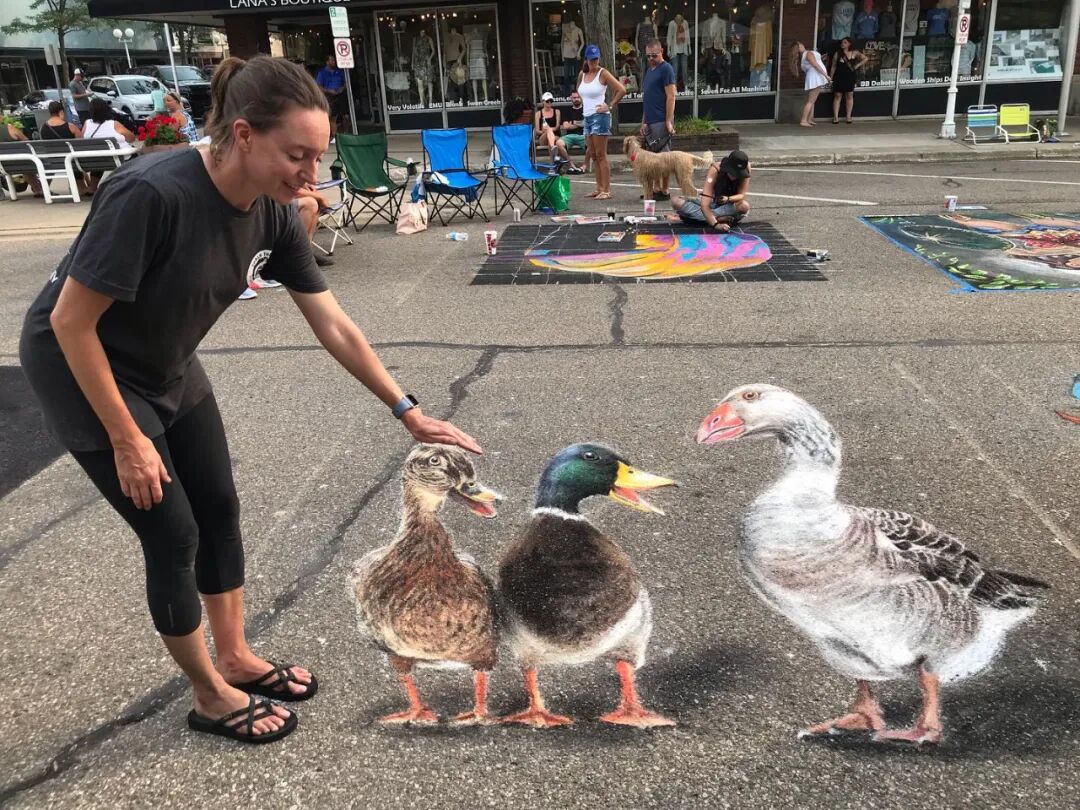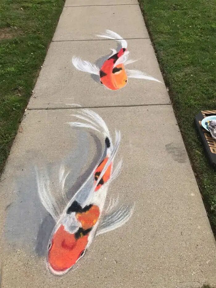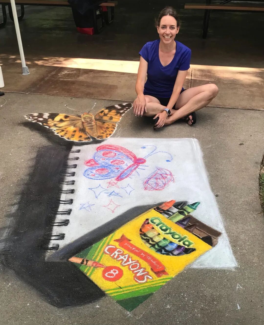 简·里金斯是一位专业画家,她擅长使用各种媒介来创作动物肖像,其中包括水彩画、油画颜料以及彩色粉笔等等,受其影响,女儿奥利维亚在3岁时,就拿起画笔跟着她一起涂鸦了,如今,她们两个人是最默契的组合,一起创作了众多栩栩如生的3D动物粉笔画,有时候她们会去公共场所绘画,但大部分时间,她们都是窝在自家后院里,不受干扰地进行创作。