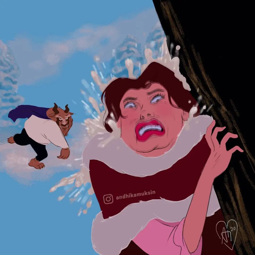 试想一下,如果每一个女孩都像迪士尼公主那样,永远保持美丽、优雅的姿态,那这个世界也太单调了。难道,美女卸下伪装后,依然能够完美如初吗?印度一位插画家安迪卡·穆克辛就用一系列插画作品,尝试想象了一下,假如迪士尼公主们不再顾及形象,露出真实本性,会是什么样子。