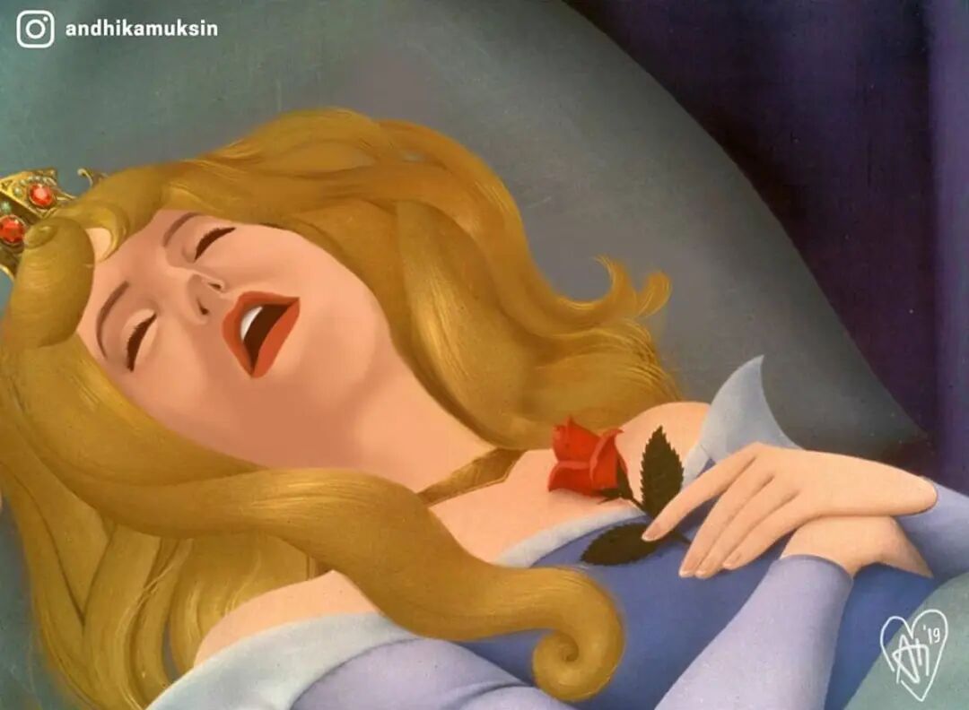 在这位插画家的笔下,我们熟悉的迪士尼公主来到了我们生活的时代,她们也有很多的烦恼,比如因失恋哭到花妆,因热爱美食胖出双下巴,就连白雪公主在王子面前醒来时,也是睡眼惺忪蓬头垢面......