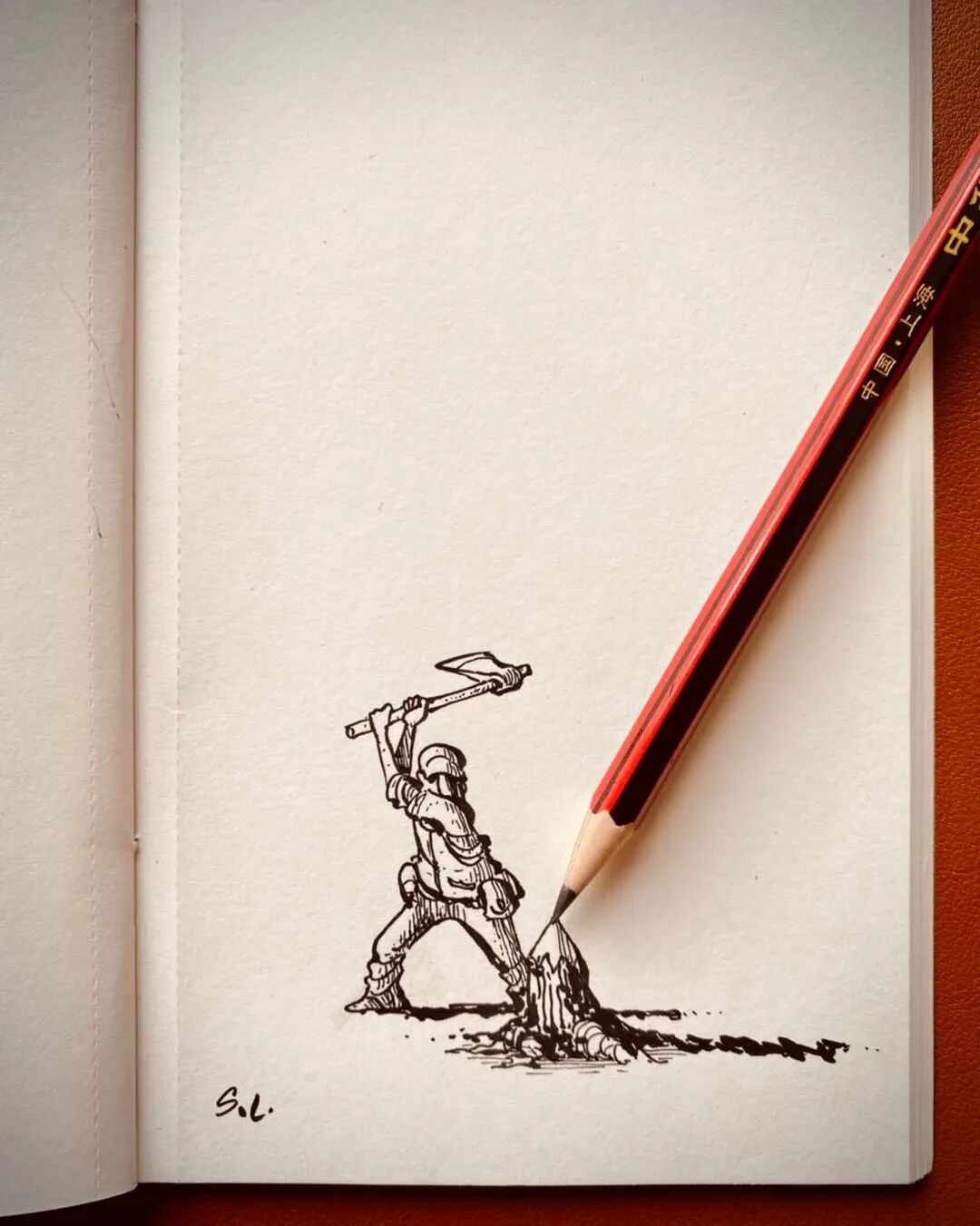 居住在新加坡的插画家山姆·莱,就是一个很少会无聊的人,他不仅自己不无聊,还会用充满创意的趣味涂鸦作品,带着别人一起摆脱无聊。在闲暇之余,这位艺术家喜欢用马克笔在本子上涂鸦,即便是出门游玩,或者去工作的路上,他也会随身带着速写本和马克笔,当看到某一个场景,灵感被激发出来时,能够第一时间捕捉下来。