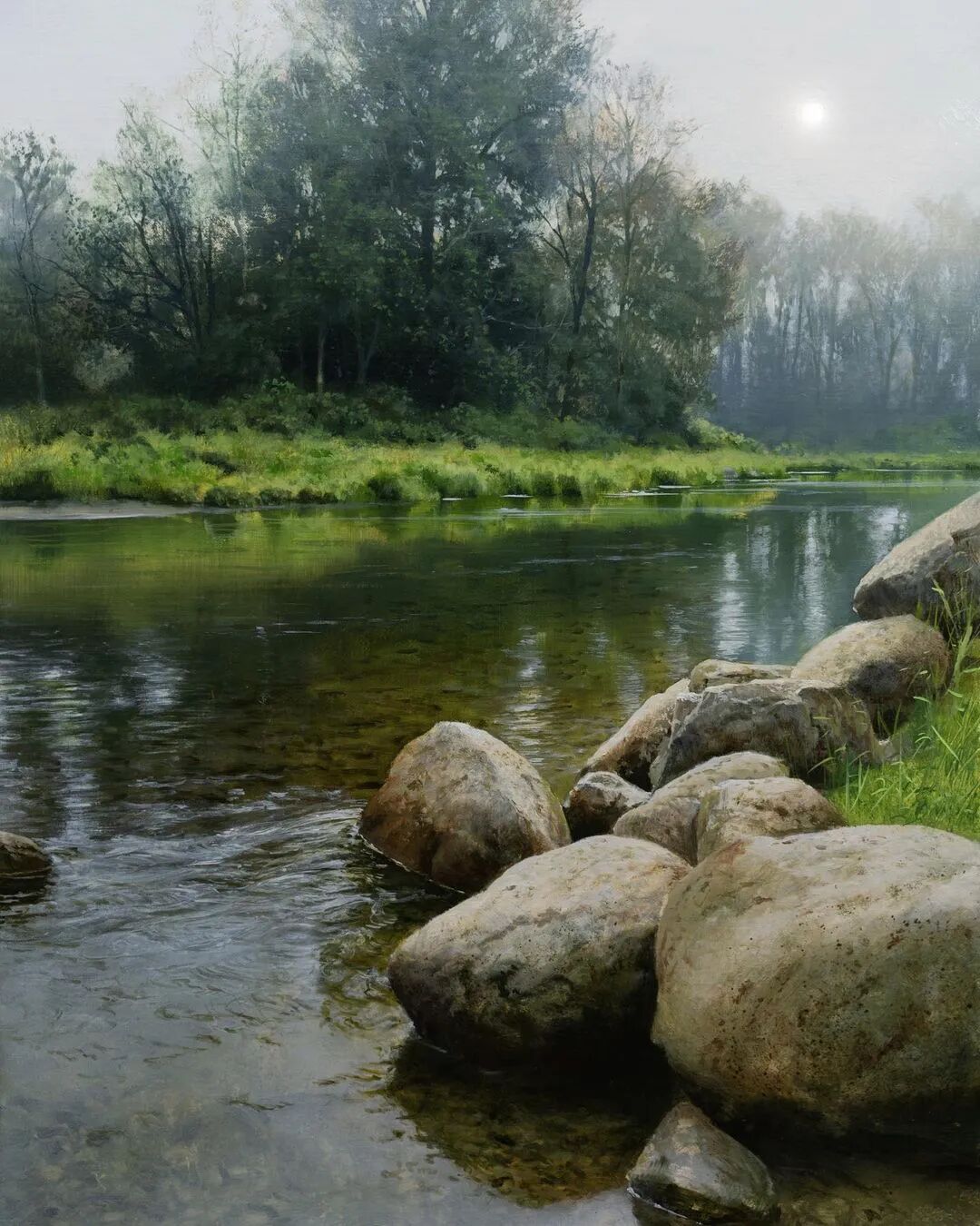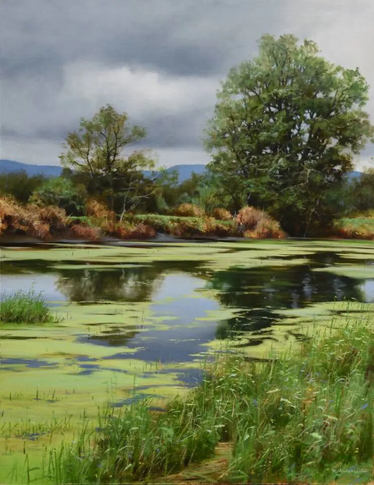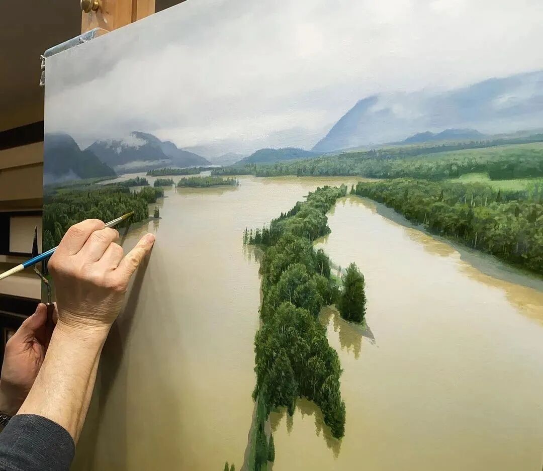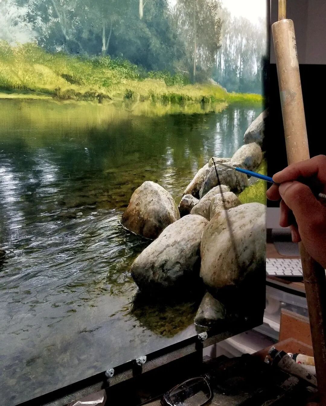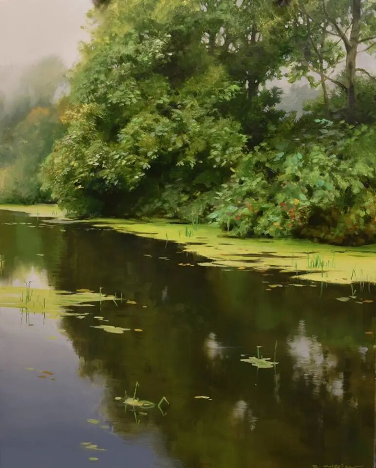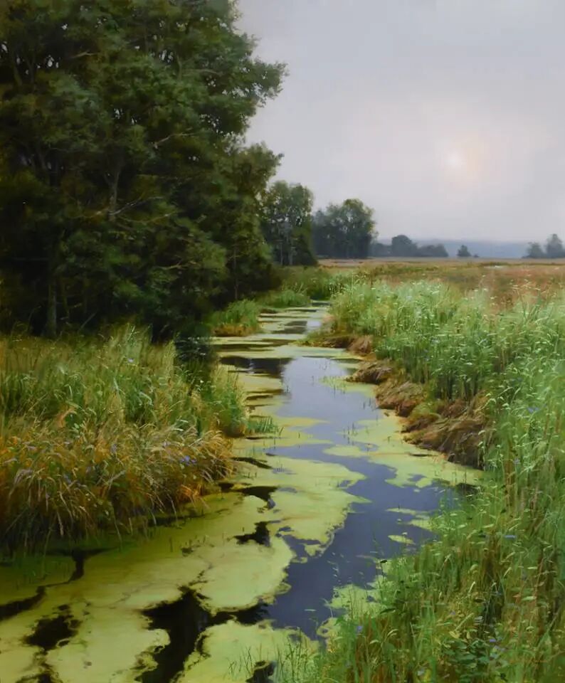 就这样,这位没有接受过任何绘画训练,完全业余的画家,靠一个念头支撑他一直画了下来,并逐渐成为一位让所有人都感觉到不可思议的超写实画家,在这位超写实画家的风景画作中,我们看不到任何人类存在的痕迹,每一幅画作都十分真实,同样也十分自然,这两者相加到一起,或许就是他的画作可以比一幅照片还像是照片的原因。