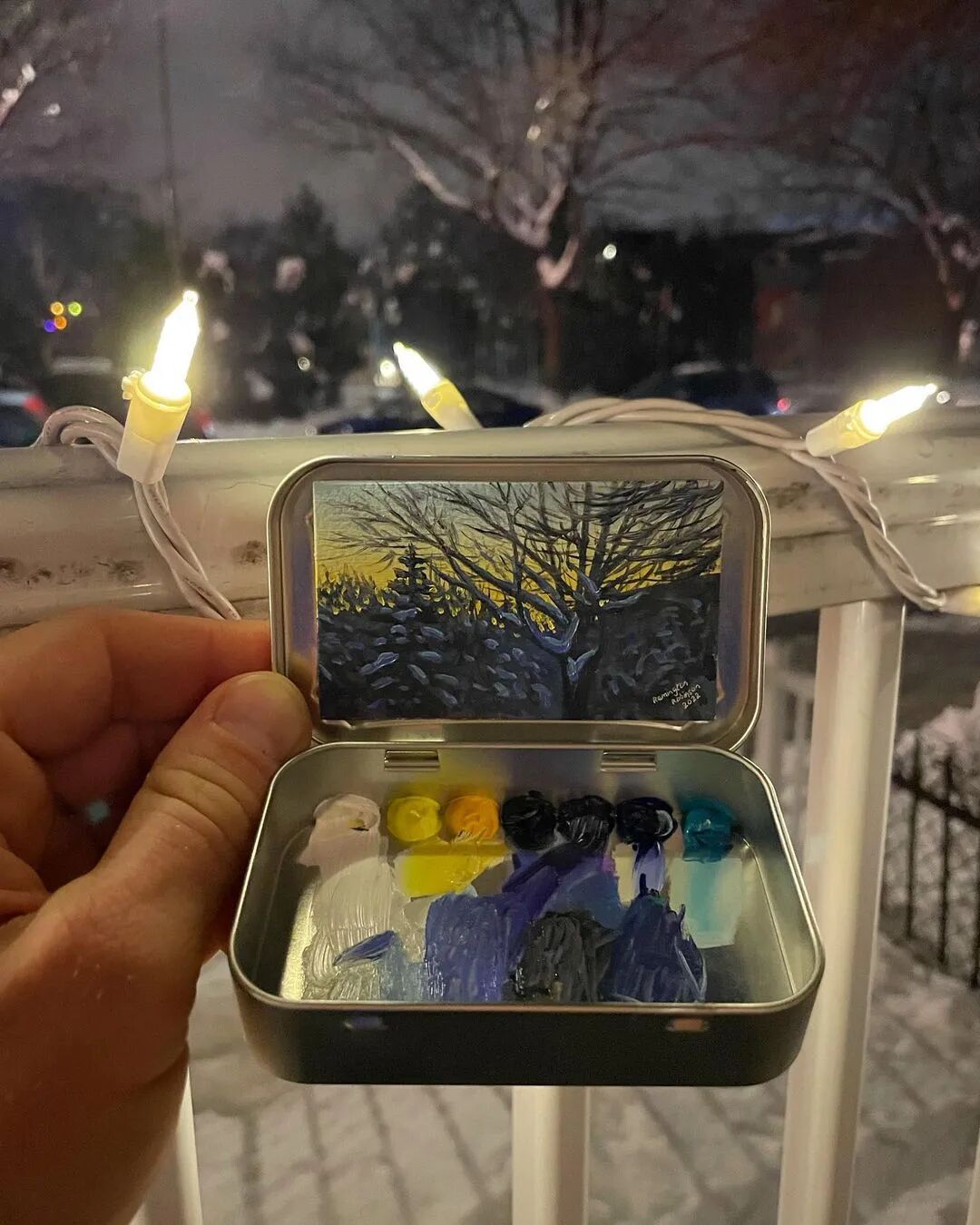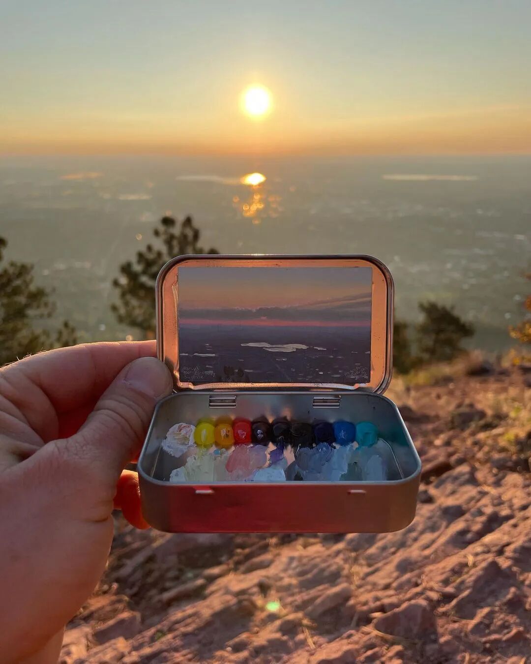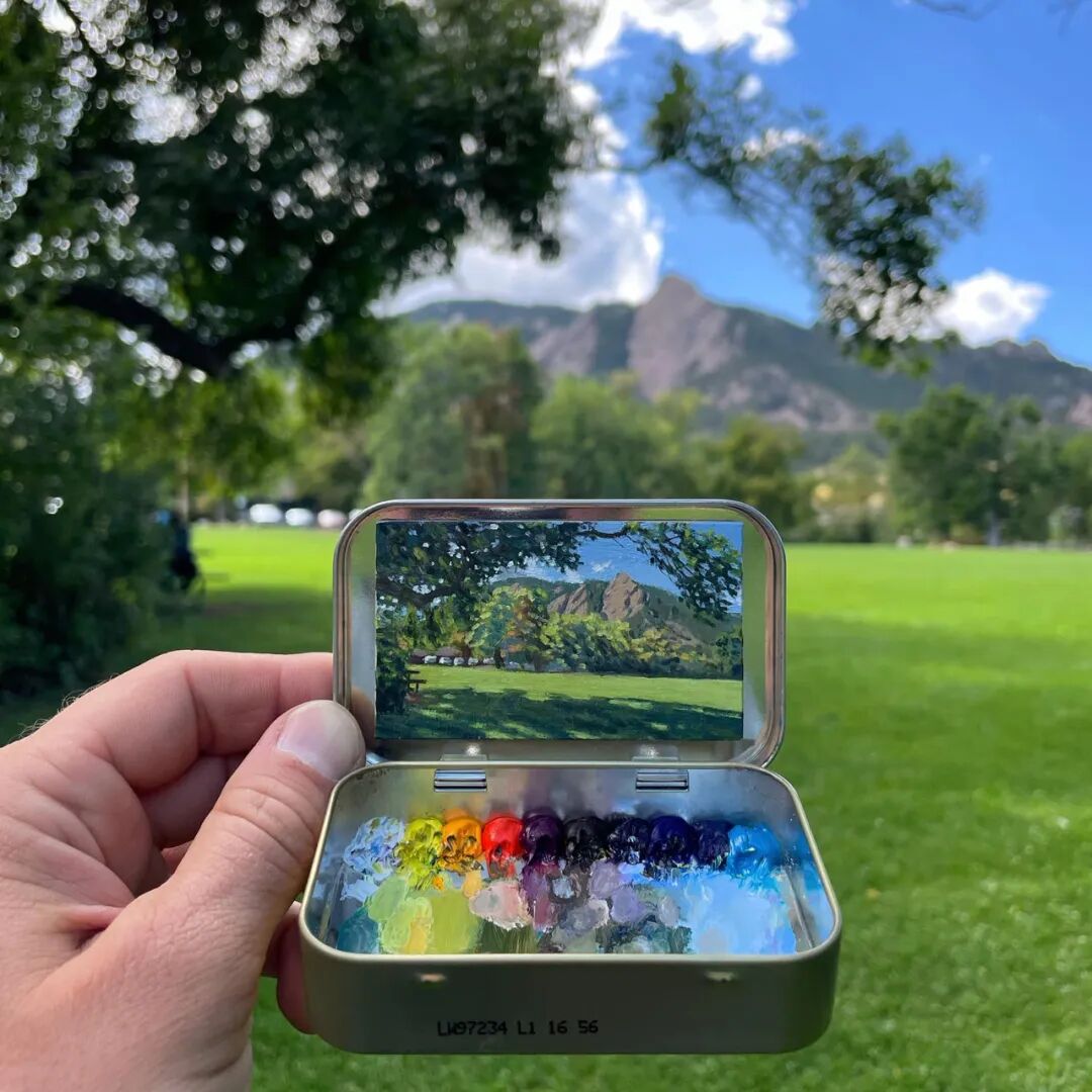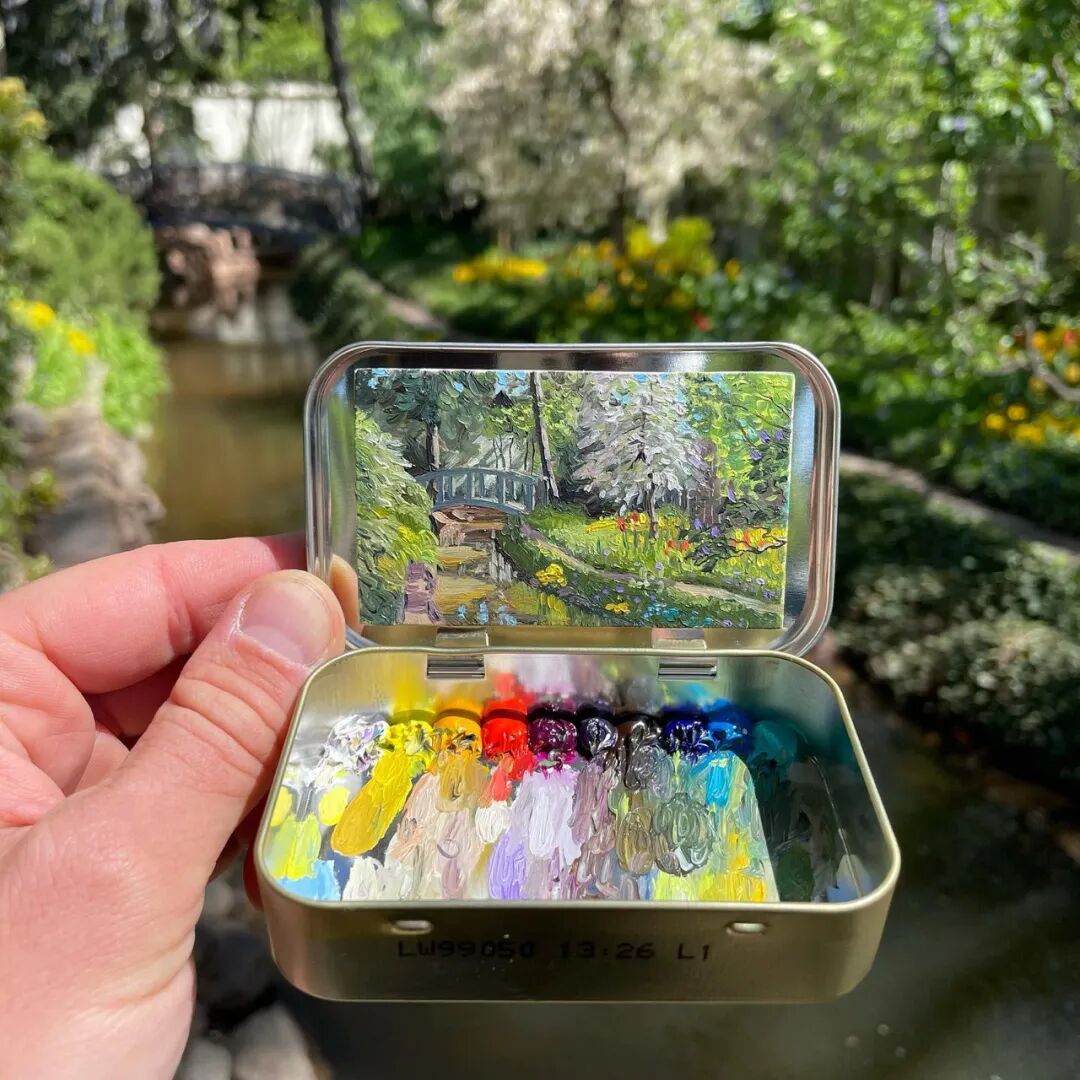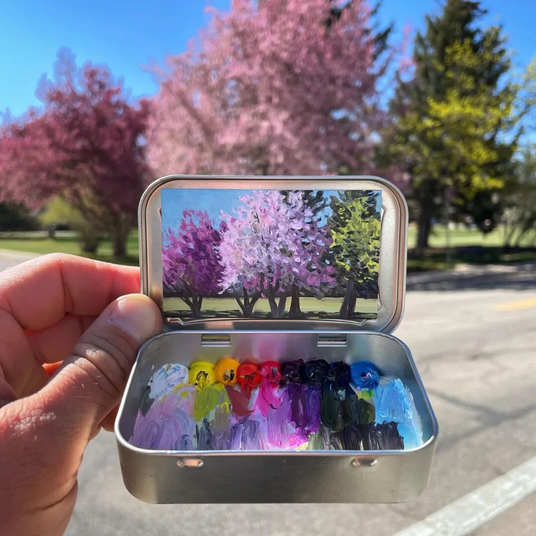雷明顿·罗宾逊从事铁盒绘画近十年的时间,对于许多人来说,这位画家就是一个行走的照相机,只要他看到喜欢的风景,就可以用画笔描绘下来,而且每一幅微缩画作都十分还原,在最近一段时间里,这位画家又绘制出一组十分精彩的风景画作,让我们一起来欣赏一下吧。