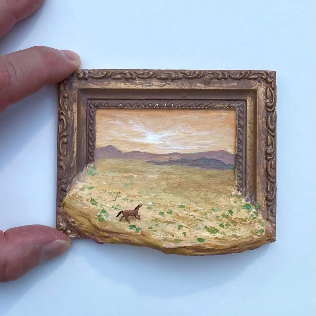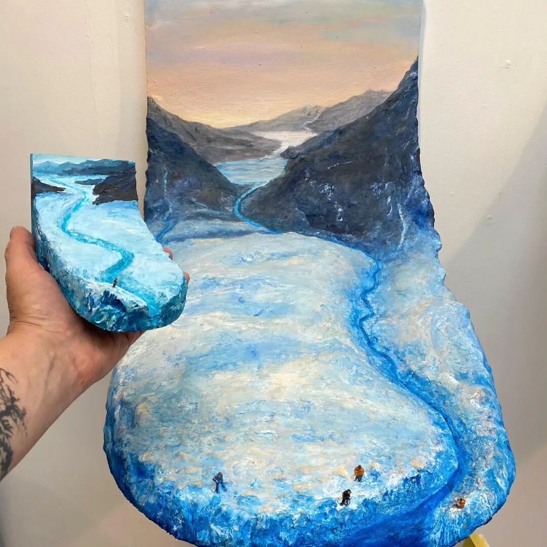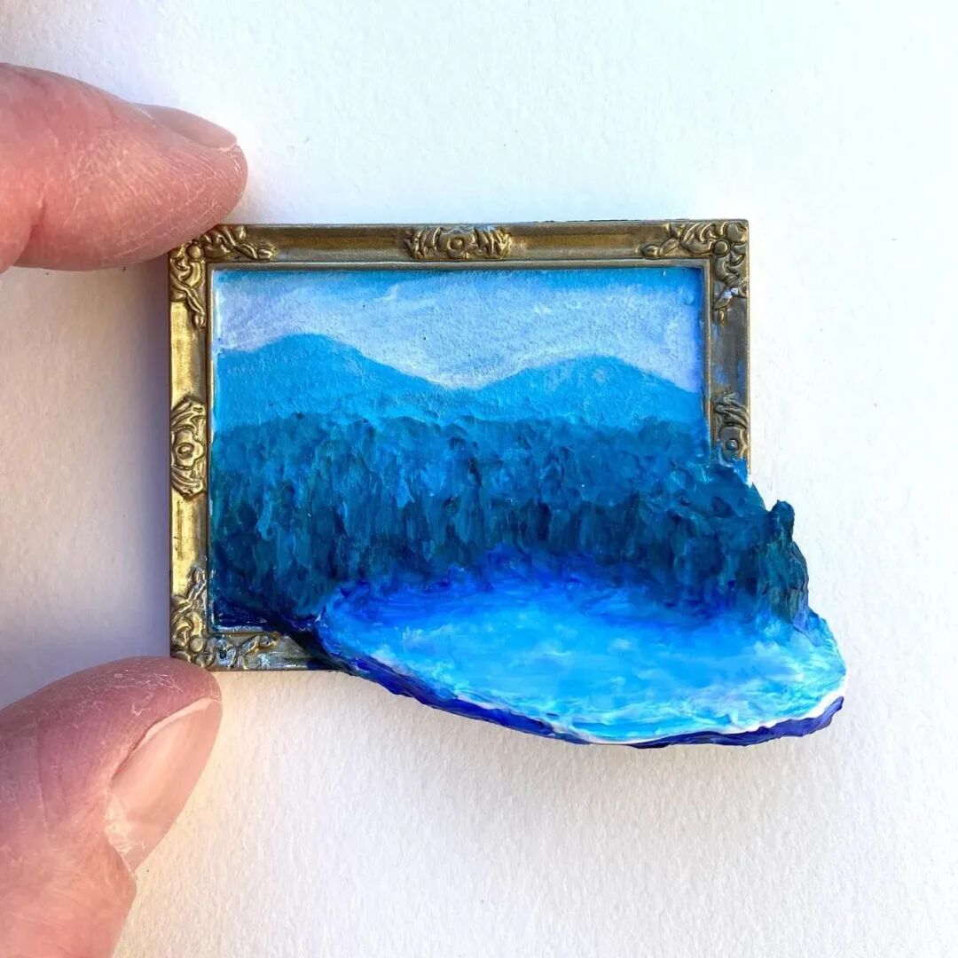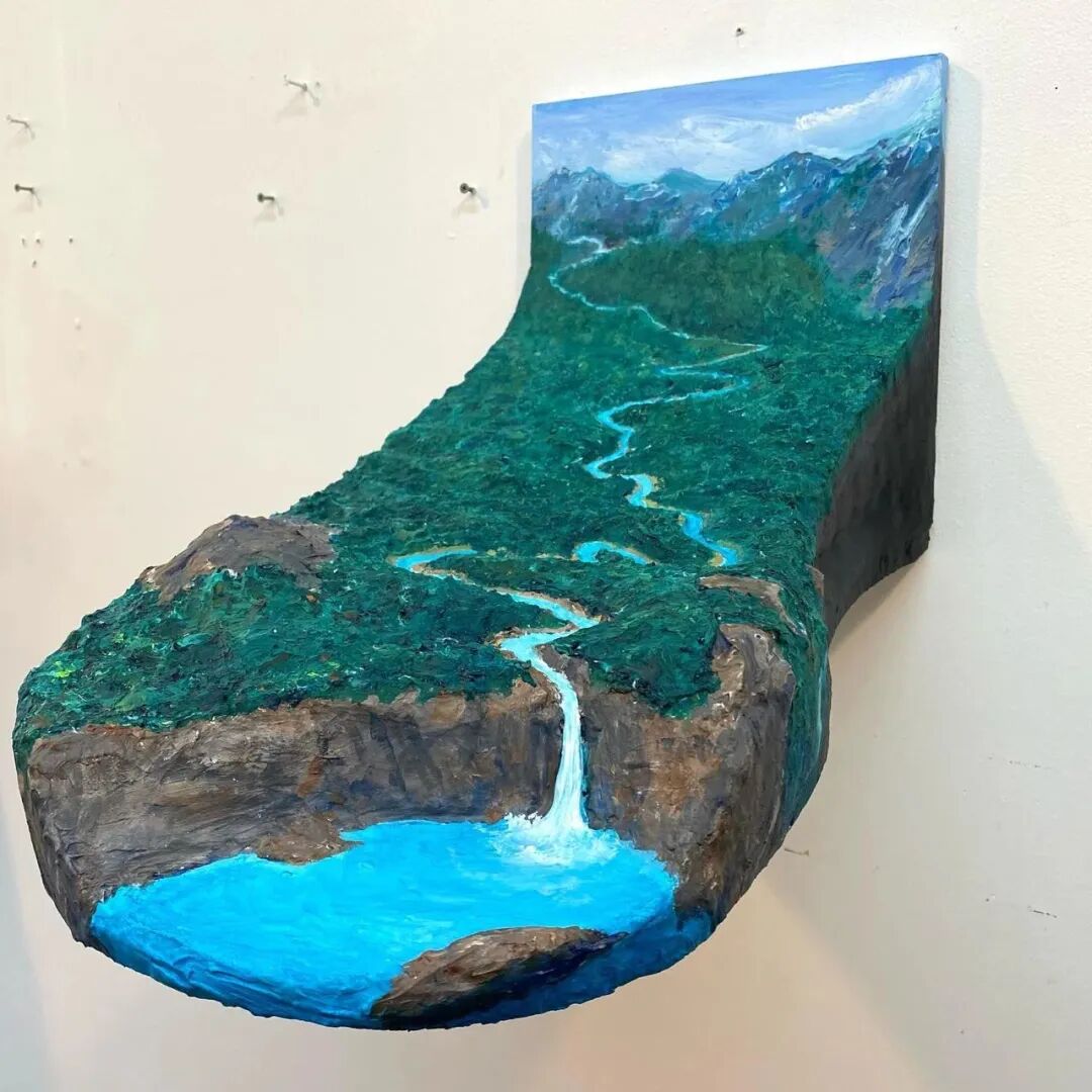 用肌理去造型绘画并不罕见,不过,像巴里·哈扎德一样,将风景画作延伸到我们眼前,还是较为少见的,这些特别的绘画作品,也给许多人带来的新鲜感,就如同利用视觉成像绘制的3D绘画一样,这种使用肌理制作的3D绘画作品,或许又会开启下一轮竞争。