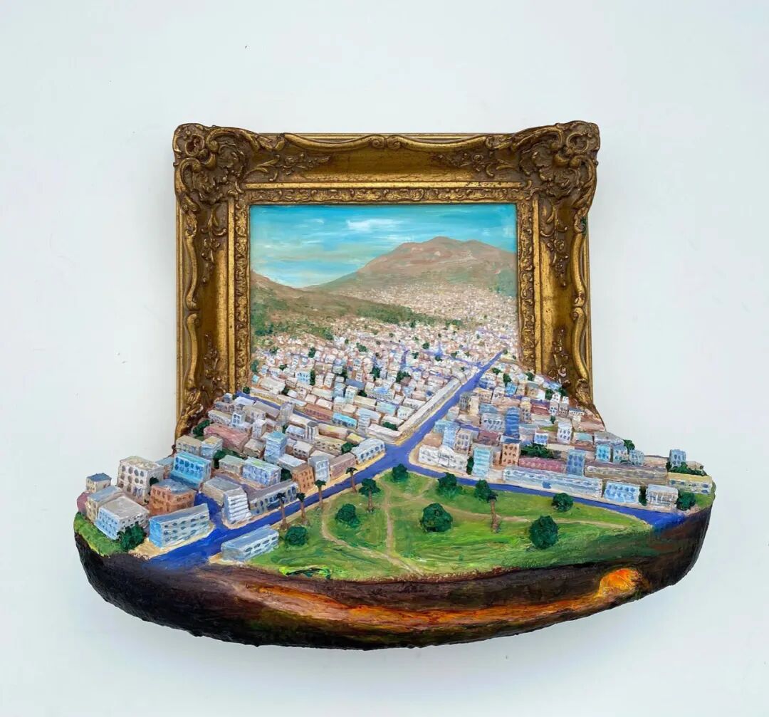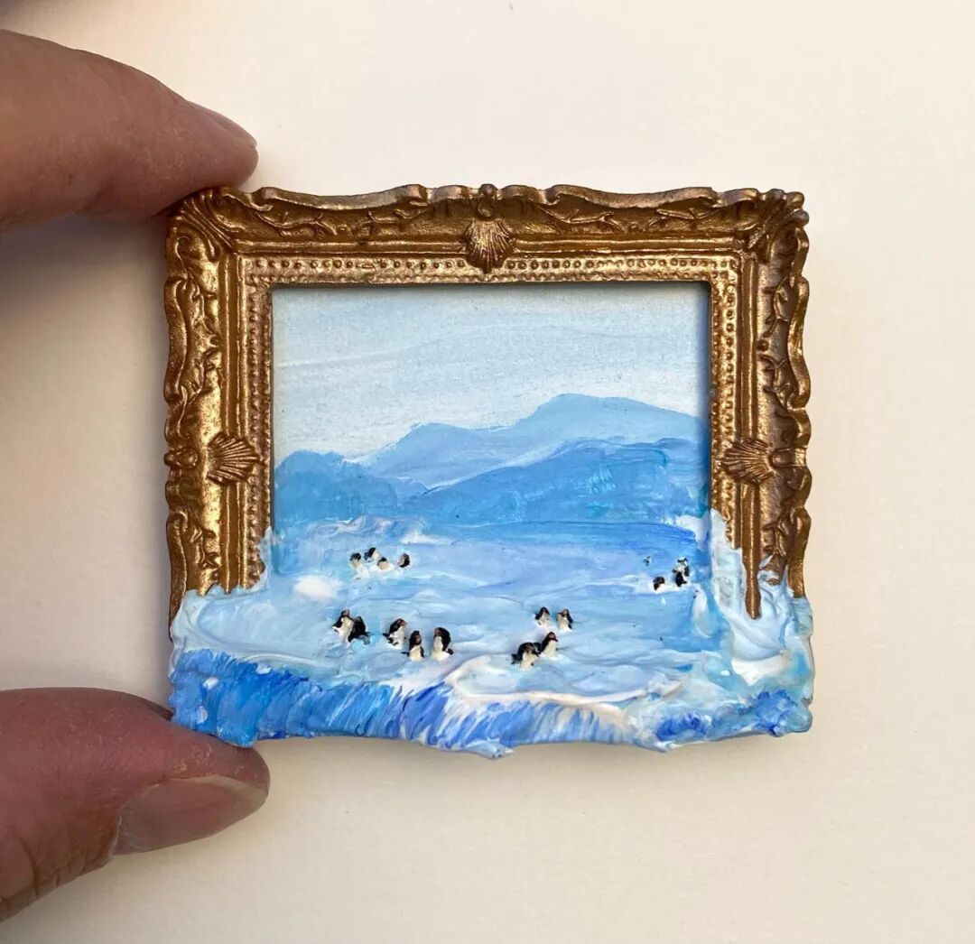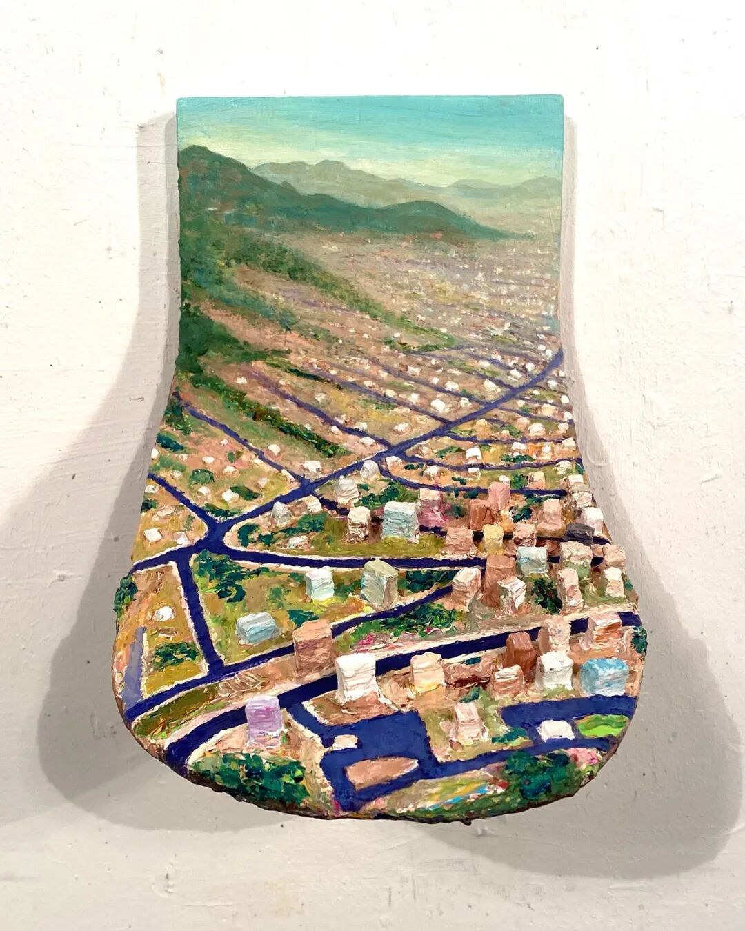 欣赏巴里·哈扎德的绘画作品,可以多角度去欣赏,就像是看一座雕塑一样,我们正面去欣赏这种3D画作,它就是一幅看起来较为立体的风景绘画,如果我们从侧面去欣赏,它就变成了类似微缩场景的雕塑,远近高低各不同,这也是巴里·哈扎德绘画作品的最大特点之一。